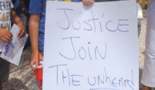 The storefront where many witnessed Faye and her sisters standing quickly became a memorial spot. Flowers, candles, and silent prayers were offered the evening after her death was announced. With heavy hearts, island residents organized a quick protest for Friday, July 7th in hopes of bringing justice to Faye’s senseless death. Concerned community members gathered with posters in front of the San Pedro Police Station on Friday, July 7th, where the Doehms were being held in custody, pending charges. Several voiced their concerns on the tragic issue, saying that San Pedro needs to ‘wake up’. In addition, many residents refuted the Doehms claim in the police report, where they classified Cannon as ‘mentally challenged’. According to these residents, Cannon was bright, and reportedly a straight ‘A’ student at Isla Bonita Elementary School. However, for quite some time now, Cannon had not been enrolled in school.