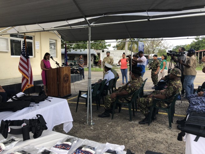 The United States Government transferred counter-narcotics equipment, valued at $432,000 USD, to the Belize Defence Force (BDF) and the Belize Coast Guard. U.S. Embassy Chargé d’Affaires, a.i. Adrienne Galanek and CEO of the Ministry of Defence Lieutenant Colonel (RET) Felix Enriquez represented the governments and people of the United States and Belize during the handover event.