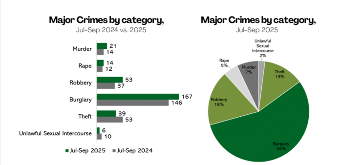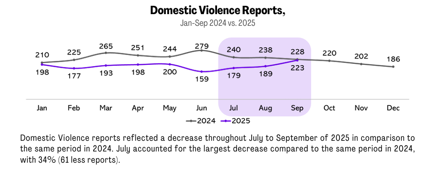 Overall, the third-quarter findings underscore the need for balanced, multifaceted approaches to public safety. While the rise in violent and property crimes calls for reinforced policing and community outreach, the encouraging domestic violence trends highlight the value of continued investment in prevention and support initiatives.