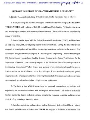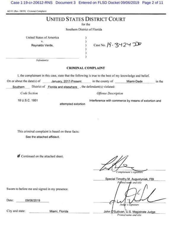 have been revealed while he remains detained at a prison in Virginia, United States of America (USA). Reynaldo Verde was detained on September 7th by agents of the Federal Bureau of Investigation (FBI) at the Washington Dulles International Airport, while on his way back to Belize. He is being accused of alleged interference with commerce using extortion and attempted extortion.