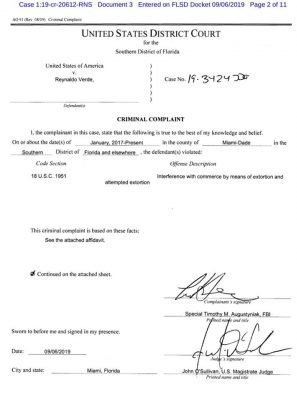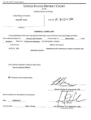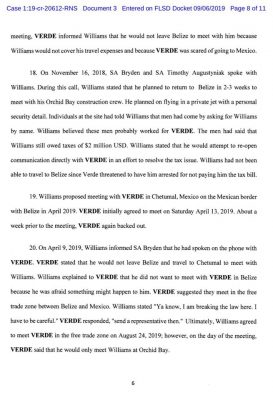 travel expenses. Then in August 2019, a meeting took place at Orchid Bay, and like the first meeting, this was also recorded. Verde allegedly wanted cash and told Williams to find ways and means to get the funds. They reportedly discussed Verde getting property instead, but instead, Verde walked away from the meeting with only one thousand dollars in cash. The affidavit adds that Verde’s attempt at extortion obstructed, delayed and affected commerce within the Southern District of Florida. Williams had acquired the services of a company to do construction at Orchid Bay. The works were canceled due to Verde’s behavior at the time.