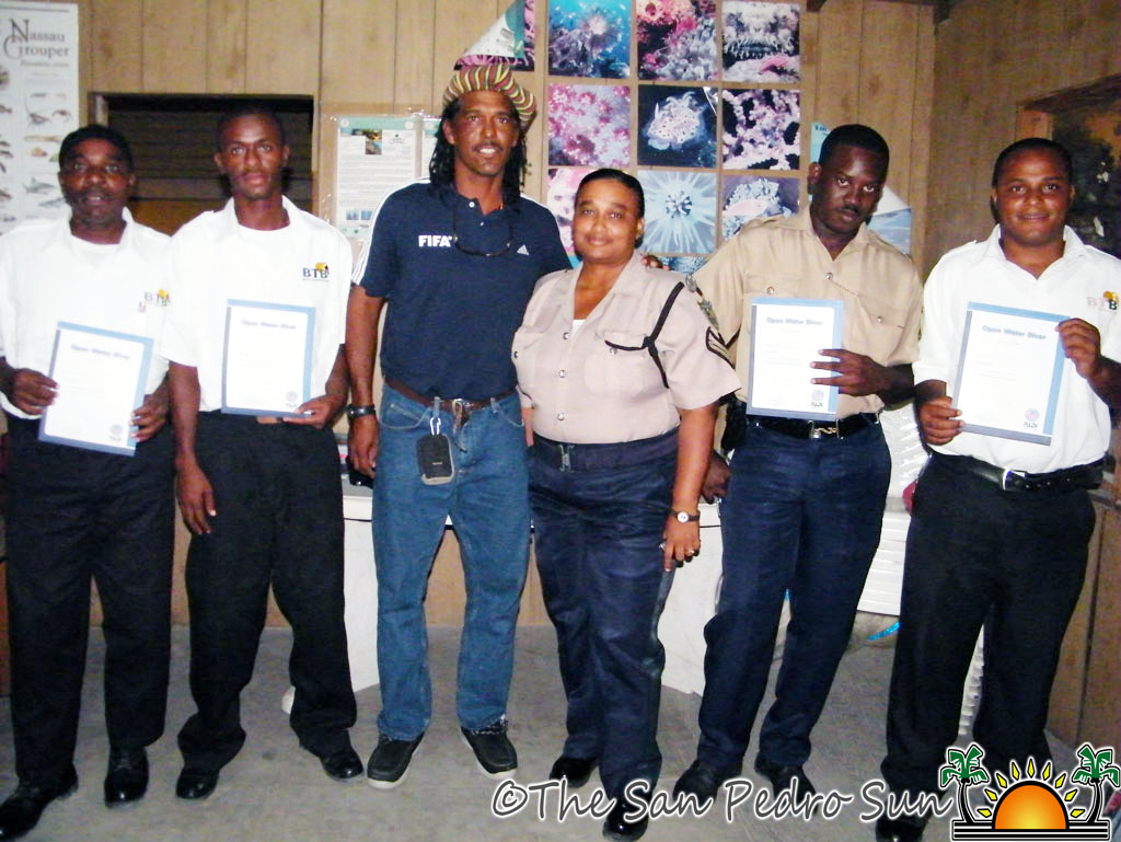 The training was made possible through a coordinated effort between the SPTGA, Hol Chan Marine Reserve, the San Pedro Police Tourism Police Unit, the US Association, PADI (Professional Association of Diving Instructors) and the various tour operators that continue to assist the tourist guide association when they venture into programs such as these.