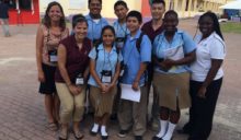 First Place, PwC Innovation Challenge, for Hire Belize Mobile App Solution to Youth Unemployment. Heidi Curry, Valbona Bushi, Buddy Magana, Adaly Cartagena, Kevin Tzac, Ismael Florian, Sam Liu, Ashtasia Ovado, Shola Babb. May 2015.