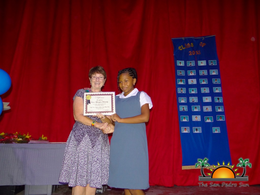 The largest graduation ceremony of the weekend was held on Friday, June 19th for SPRCS. Under the theme “Someday our dreams will take us to the heights we wish to fly, for only we have the power to make our dreams come true” the event was held at the Angel Nuñez Auditorium. Officiating the ceremony was Solani Graniel. Miguel Angel Hancock delivered the welcome address, which was followed by distribution of awards. Following the guest speaker address by Education Officer Miriam Codd, diplomas were issued out. Betty Alpuche delivered the valedictory address and then passed on the ceremonial torch to standard five top student Rachel Alamilla. The class then sang their rendition of “Count on me” by Bruno Mars. Jaslanie Kie closed off the ceremonies with the vote of thanks address.