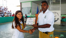 After a few musical and dance performances, students cheered as the female and male basketball players were awarded with trophies after recently winning the regional championships. The male volleyball team was also awarded with medals and a banner, while the female volleyball team received certificates from CODICADER (The Central American Council of Sports and Recreation).