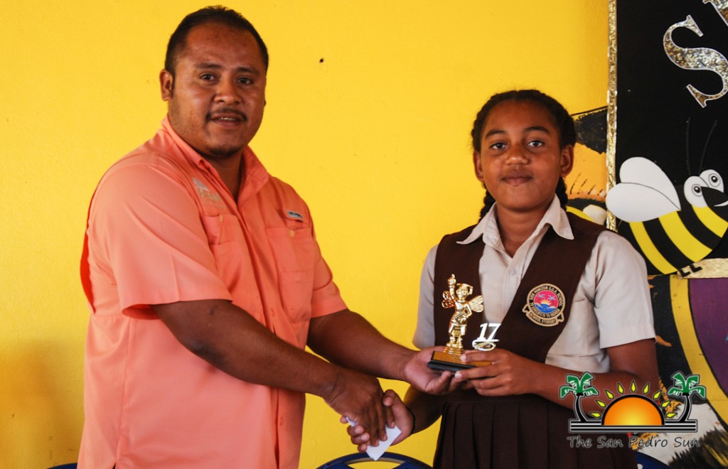 A total of 12 students from six different schools from San Pedro Town and Caye Caulker partook in the competition. After three rounds of intense spelling, Moriera took first place when she correctly spelled the word “oblivion”. Tellen Smith from The Island Academy placed second, and Jamileth Beltran from NHSDAS came in third place.