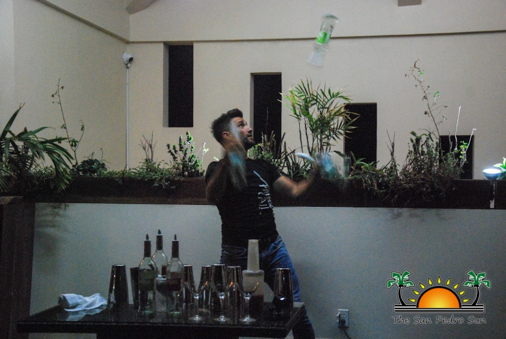 World champion flair bartender Alexander Shtifanov delivered a spectacular show on Thursday, March 9th at Rain Restaurant and Rooftop Terrace in Northern Ambergris Caye. For a small fee, attendees enjoyed a world class show, which began shortly after 10PM.