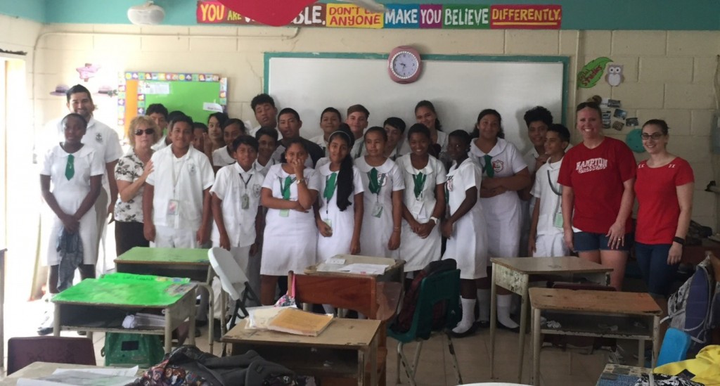 During their first alumni trip in April 2017, volunteers of Christopher Newport University (CNU) in Newport News, Virginia, USA, visited Ambergris Caye on a mission to visit the island’s schools. Judy Raiford Pantelides, Adjunct Faculty at CNU, along with Lindsey Pantele, Liz Ciancia and Jessica Gateau, graduates of the Master of Arts in Teaching program at CNU, assisted Holy Cross Anglican School, San Pedro High School and San Pedro Roman Catholic Primary School for several days.