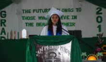 Aliny Ventura and Jahson Wright were the Mistress and Master of Ceremonies. After singing the National Anthem, the graduates sang their school song. Angela Luna delivered the salutatory welcome address, reflecting on her personal accomplishments, and congratulating her classmates for reaching this long-awaited milestone.