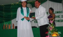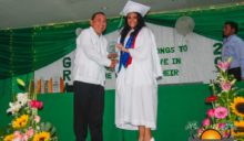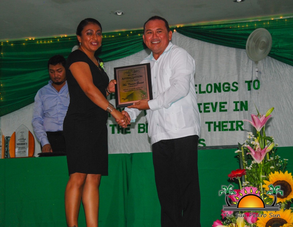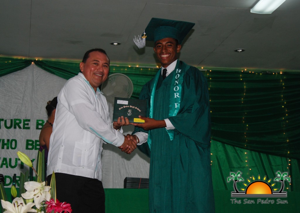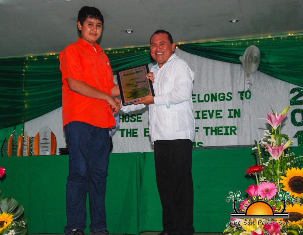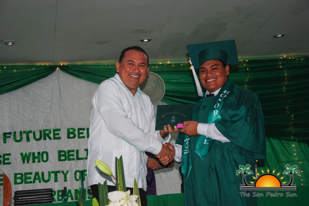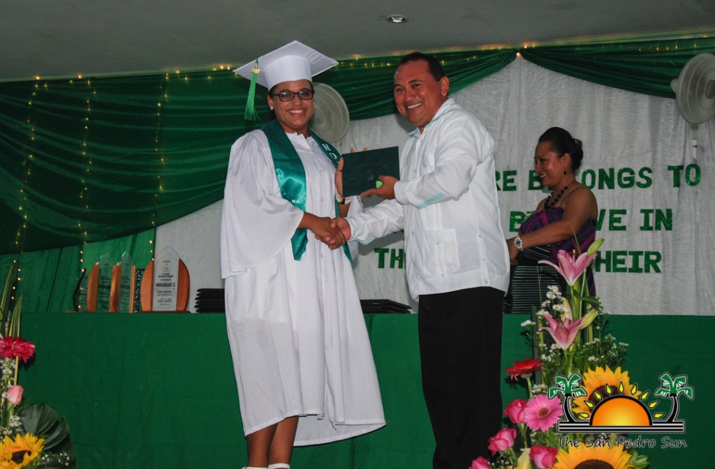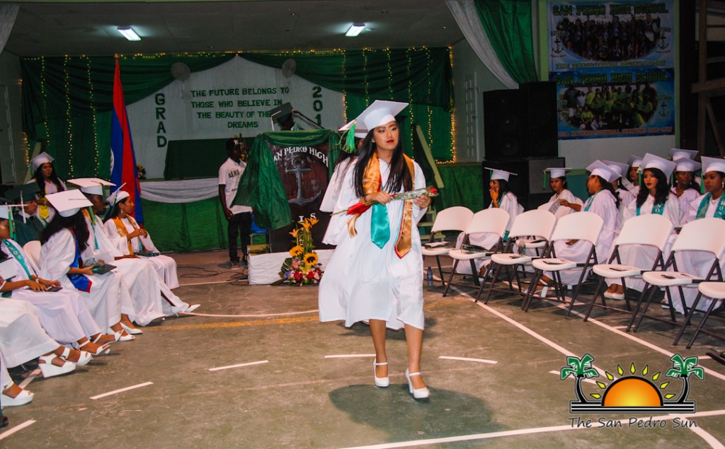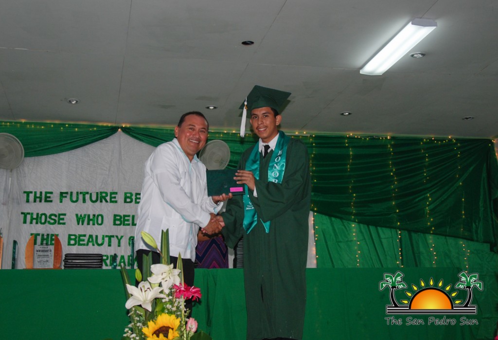 Principal Emil Vasquez and Chairman Abner Andre Perez distributed diplomas to the Class of 2017, after which outstanding students were awarded. Male Athlete of the Year went to Guillermo Nuñez, while Female Athlete of the Year went to Ada Cordova. Senior of the Year went to Kristy Novelo, and Vladimir Campos won the Perseverance Award.