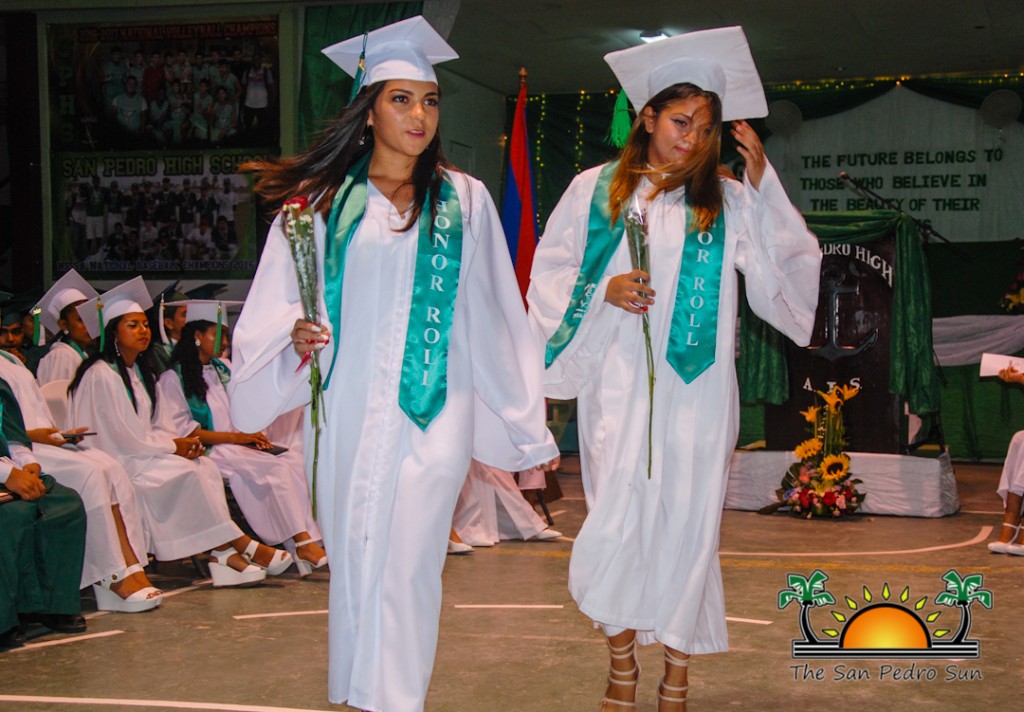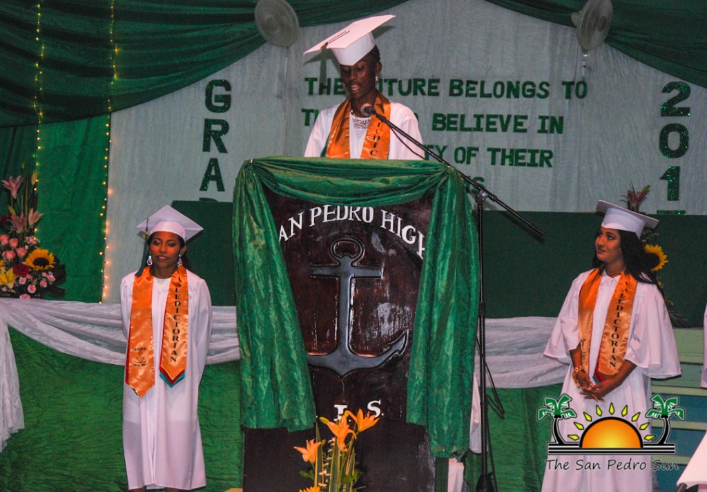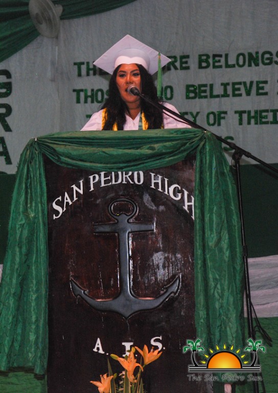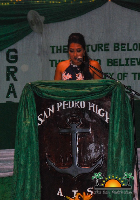 Zieda Gabriela Guerrero served as the guest speaker for the graduation, and her heartfelt speech encouraged the students to keep true to their dreams, and to work towards their goals. Following after, all four valedictorians gave a brief valedictory address, which encouraged their classmates to study hard and to value education. The traditional and emotional rose ceremony was led by Britney Bijil and Neyli Molina, while the candle light ceremony was led by Rebecca Barkhouse and Alina Ventura.