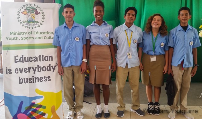 San Pedro High School students Shanelly Gutierrez, Caroline Sersland, Alan Ayala, Rachel Alamilla and Josani Balam won the 2018 Ministry of Education’s Youth Innovation Challenge competition, sponsored by Price Waterhouse Cooper and the international non-profit organization Peacework, at the Marion Jones Sports Complex in Belize City on Wednesday, May 9th.