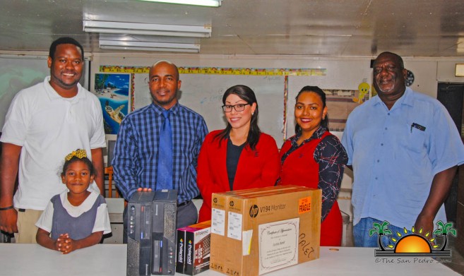 The Holy Cross Anglican Primary School in the San Mateo Area of San Pedro Town received two desktop computers courtesy of the Scotiabank San Pedro Branch on Wednesday, May 9th. Present to receive the donation was principal Rodney Griffith, and computer teacher Aaron Tomas.