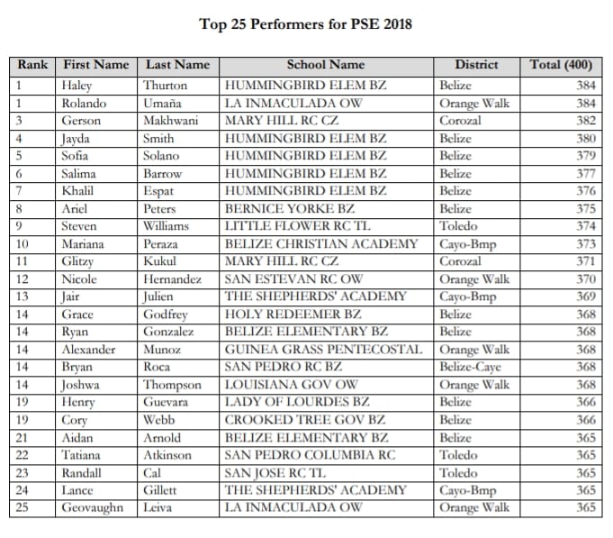 The Primary School Examination (PSE) results for 2018 are out, and one student on Ambergris Caye did exceptionally well, placing in the top 25 performances across the country. Bryan Joan Roca, a student at San Pedro Roman Catholic School, scored 368 total points out of 400, landing him in the #14 spot countrywide.
