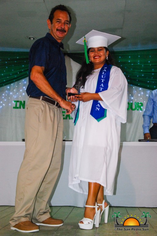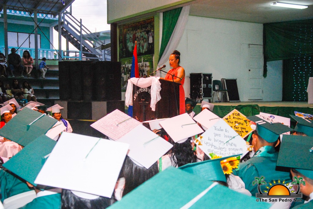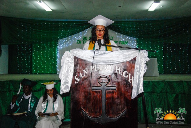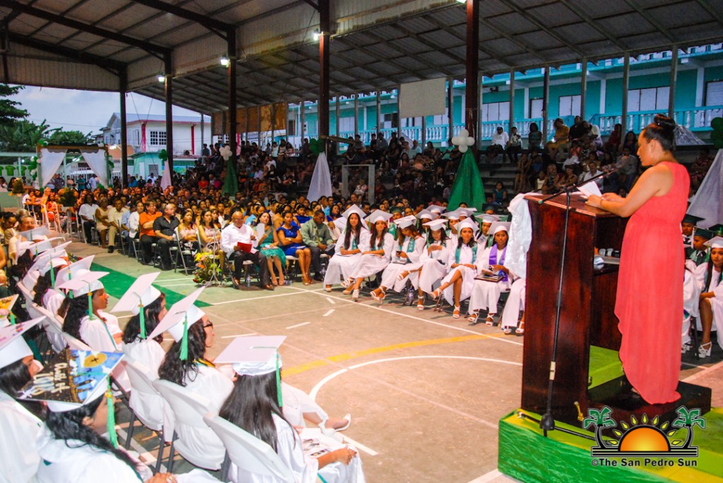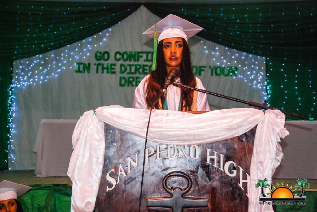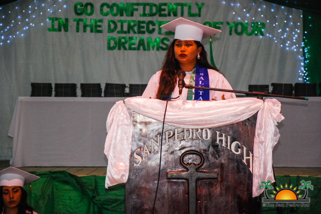 After beautiful renditions of the Belize National Anthem and School Song, the Salutatorian Address was delivered by graduate Elisa Garcia. She welcomed everyone to the ceremony, commending all parents and teachers for their dedication and support. Garcia thanked everyone who helped her in the journey through her secondary studies, while encouraging her colleagues to continue working hard in their future endeavors.