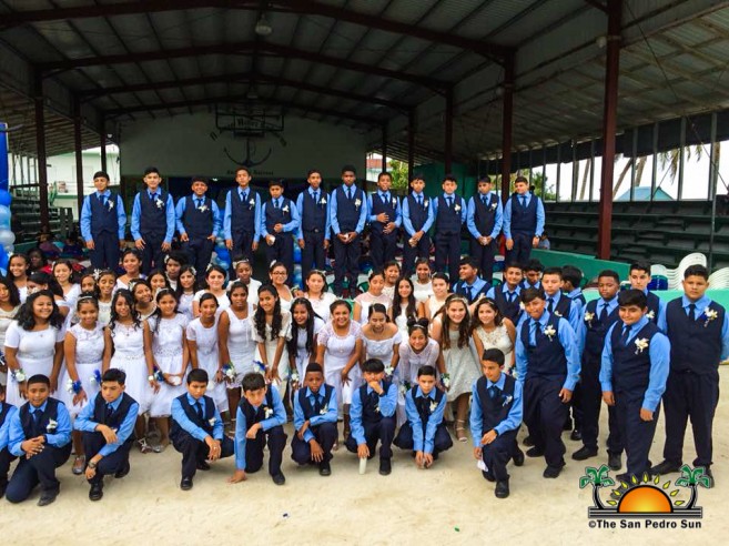 At 2PM on that same Sunday, the Holy Cross Anglican School held their graduation commencement inside the Paradise Theatre. There was a total of 45 students graduating this time and Suseli Lopez had the privilege of delivering the valedictorian remarks. Guest speaker was Education Officer for San Pedro and Caye Caulker, Odilia Caliz, and certificates and awards were given out by Olivia Tasher and Mariceli Humes. Principal Rodney Griffith also received a special token after he announced that he is retiring.