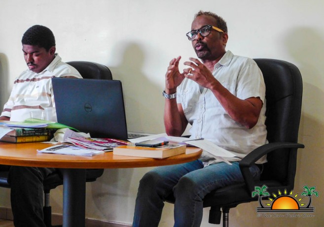 During his visit to Belize, journalist Lennox Samuels facilitated a journalism workshop with the country’s media corps at the University of Belize in Belmopan City on Saturday, September 8th. Present at the workshop was Jeanelle Mencias and Miriam Longsworth from the Government Press Office, Michelle Sutherland, Benjamin Flowers and Marion Ali from The Reporter Newspaper, Alindy Marisol Amaya and Melody Wagner from Kremandala, Sitnah Blease from Love FM, Courtney Weatherburne from Channel 7, Hamerlin Flores from The San Pedro Sun Newspaper, Alford Grinage, Linden Flowers, Luis Castellanos, Alejandro Cowo, Wilfredo Ferrufino, Hortence Hernandez and Jenny Bonilla from the Belize Police Department (BPD), and University of Belize (UB) students/aspiring journalists Charleston Gladden, Leila Oh, Agatha Petkau, Roger Hyde and Tracey Sangster.