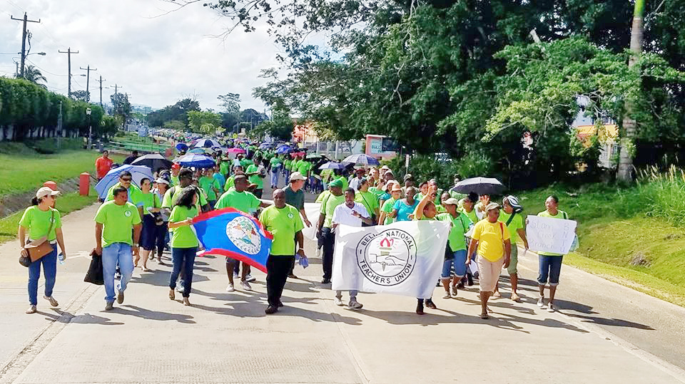 Due to a series of increasingly contentious negotiations with the Ministry of Education (MOE), the Belize National Teachers Union (BNTU) held a demonstration rally through the main streets of Belmopan City on Wednesday, November 7th. Those rallying are demanding the MOE provide hardship allowance for schools in remote communities and agree to Proposal 22, which speaks of the Ministry paying 100 % benefits to teachers and support staff of grant-aided secondary schools.