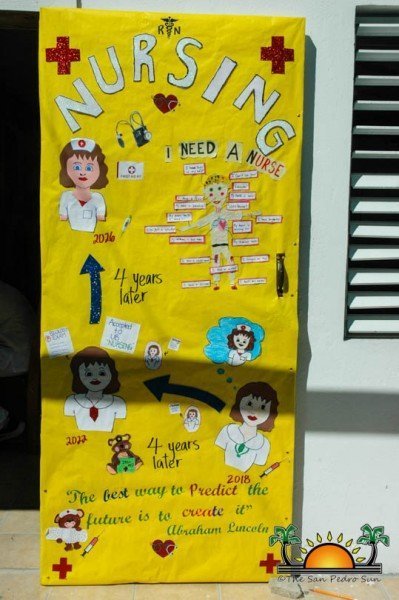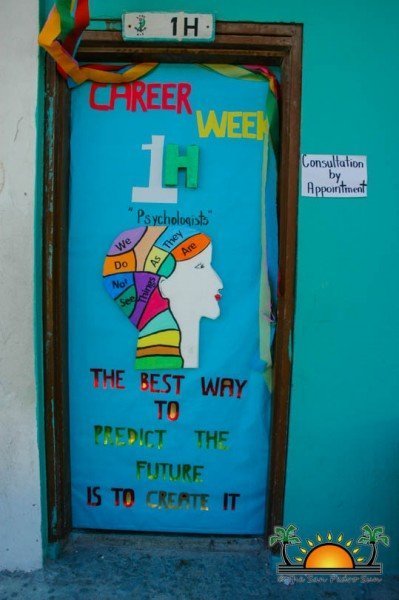 SPHS Career Week 2019 culminated on Thursday, February 14th with a door decoration competition, where each class highlighted a career of choice via classroom doors decor. All classes brought their A game and made it hard for the judges, who were Ritchie Tzib, Hamerlin Flores and Sofia Munoz. After the judges had visited all the classrooms, points were tabulated and the winners were announced. The first place went to the Class of IG (nurses), who won $300. The Class of IH (Psychologist) placed second and won $200, while the third place award went to the Class of 2G (Tour Guide), who won $100.