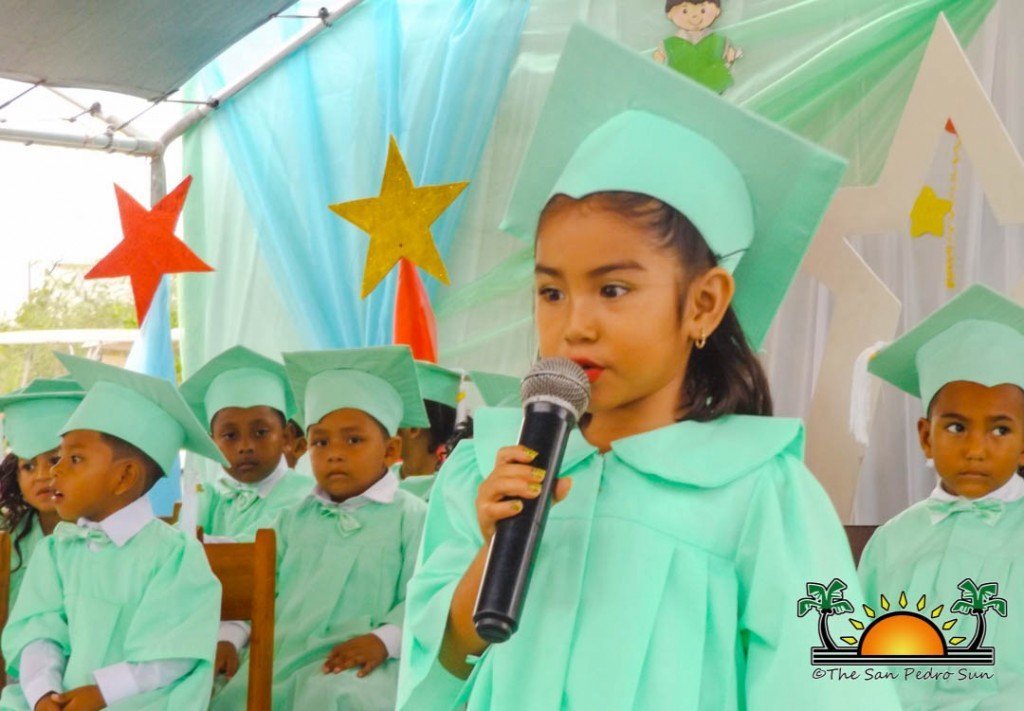 The Graduation season continued this weekend in San Pedro Town with one primary school and three preschools hosting their commencement exercise. A total of 12 students received their primary schools diplomas and will move on to the high school level, while 89 youngster received their Preschool certificates and will enter the primary school level.