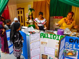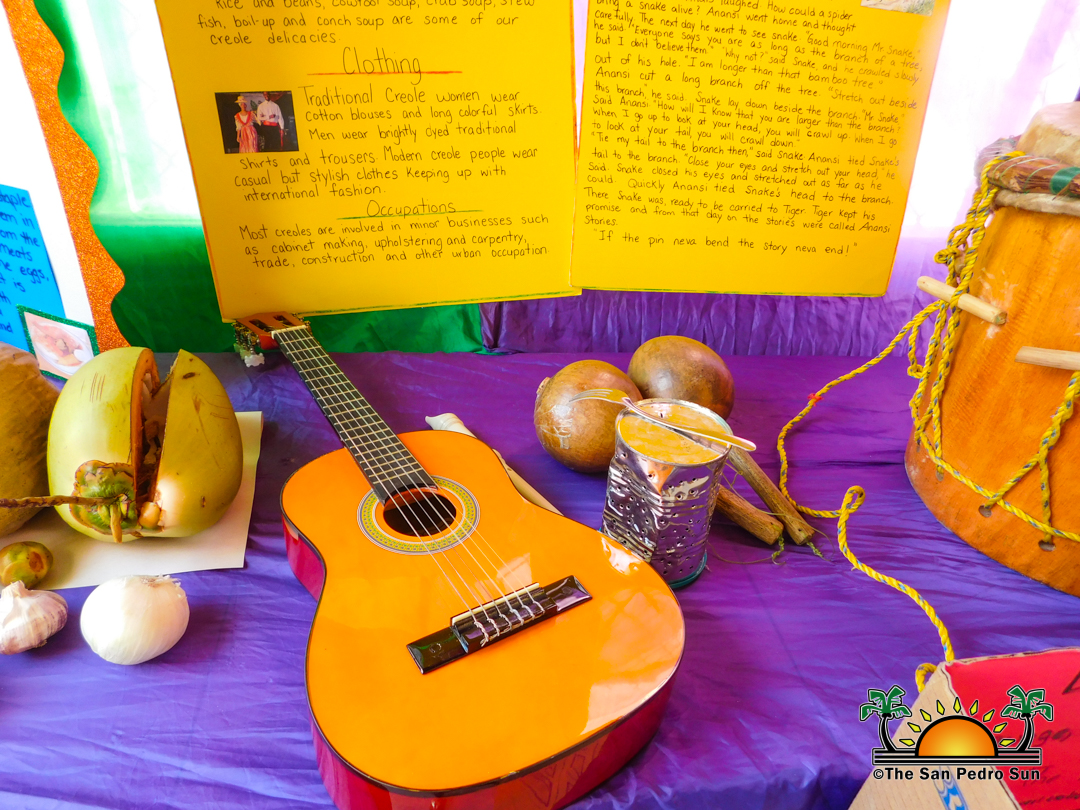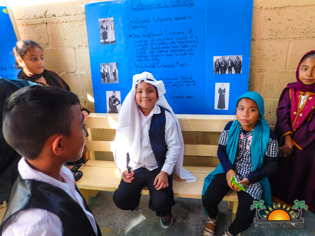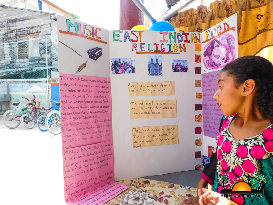 Each grade level had a booth set up on the school compound with information and visual displays of their assigned culture. Represented were the Chinese, Lebanese, East Indian, Mennonite, Mestizo, Garifuna, and Creole cultures. Most students were dressed in different cultural wear and animatedly presented to the guests that stopped by. At each booth, there was detailed information covering aspects such as religion, clothing, food, music, and language. The East Indian group even had a short dance they performed after concluding their presentation.