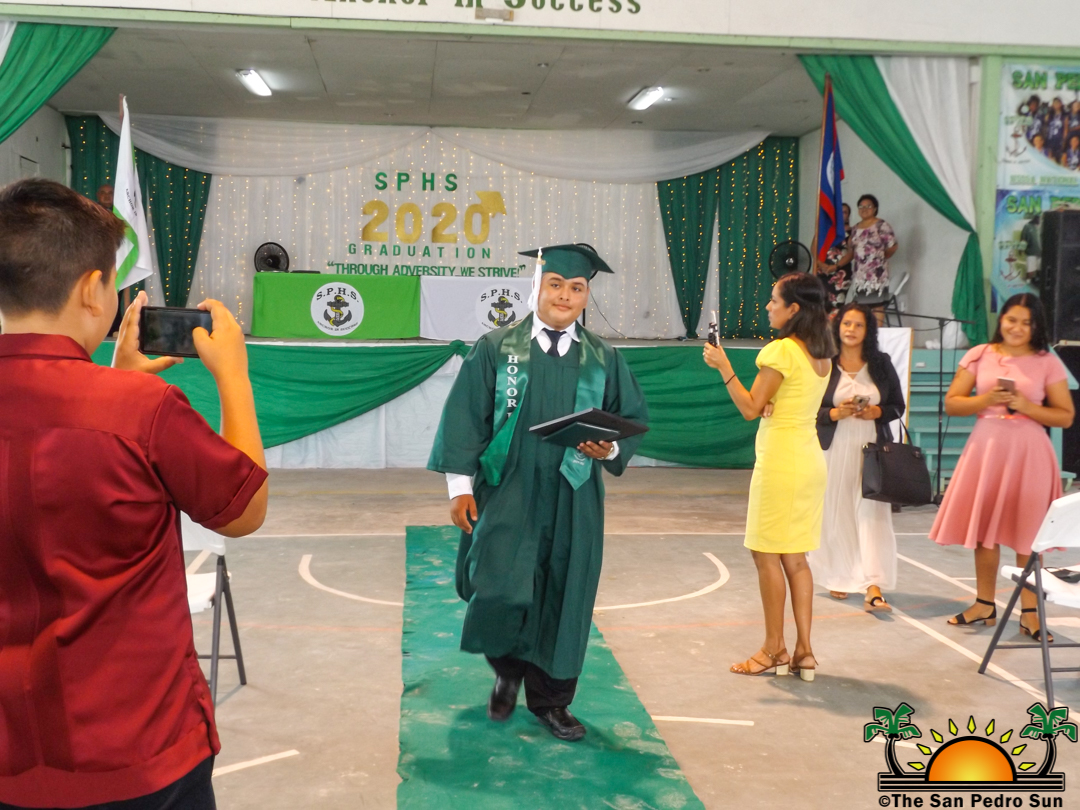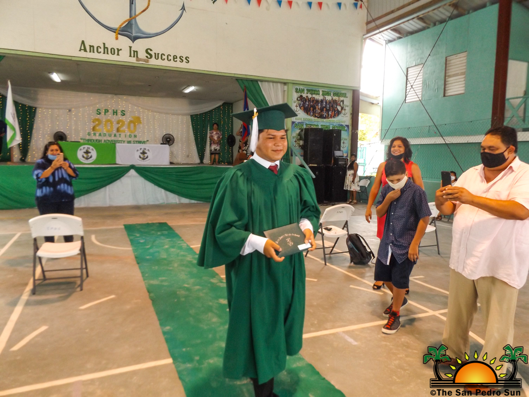 The 2020 graduation season in San Pedro Town has so far seen brief celebrations, with only immediate family members attending the scheduled ceremonies. This was the case of the graduating class of San Pedro High School (SPHS), who were hosted via a virtual ceremony under the theme ‘Through Adversity We Strive,’ at 6PM on Thursday, June 18th on Reef TV.  All 139 graduates received their diplomas and certificates earlier across a span of two days, starting on Wednesday, June 17th at the Angel Nuñez Auditorium.