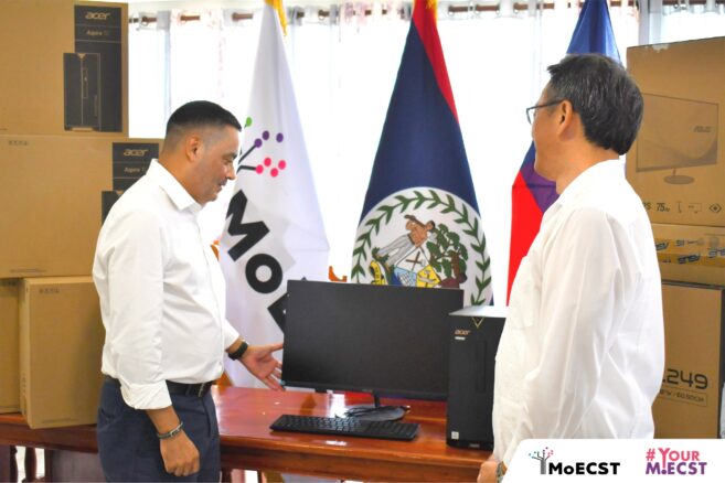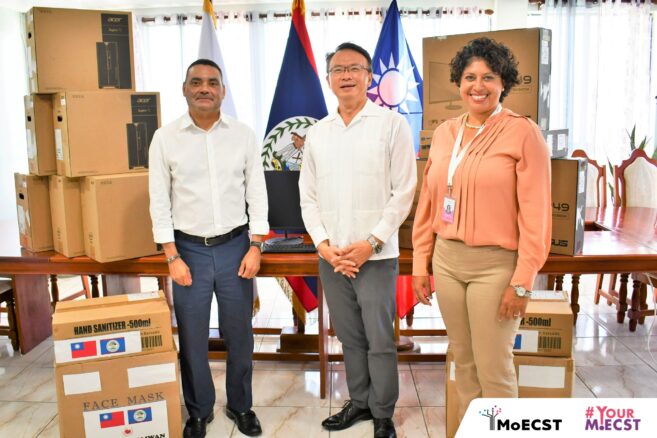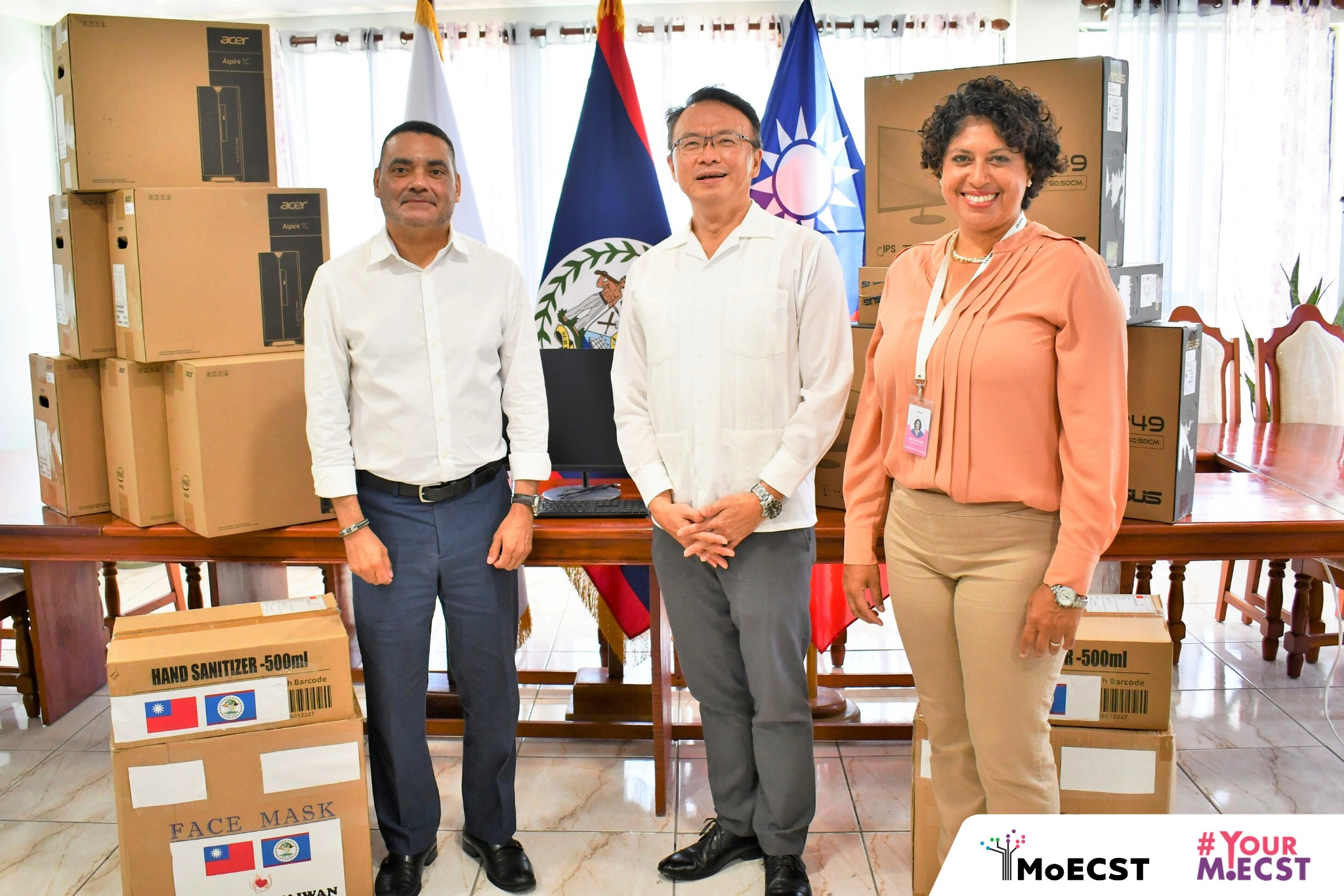 On April 13, 2022, the Ministry of Education, Culture, Science and Technology (MoECST) received a donation of desktop computers and hygienic supplies from the Embassy of the Republic of China (Taiwan) in Belize.