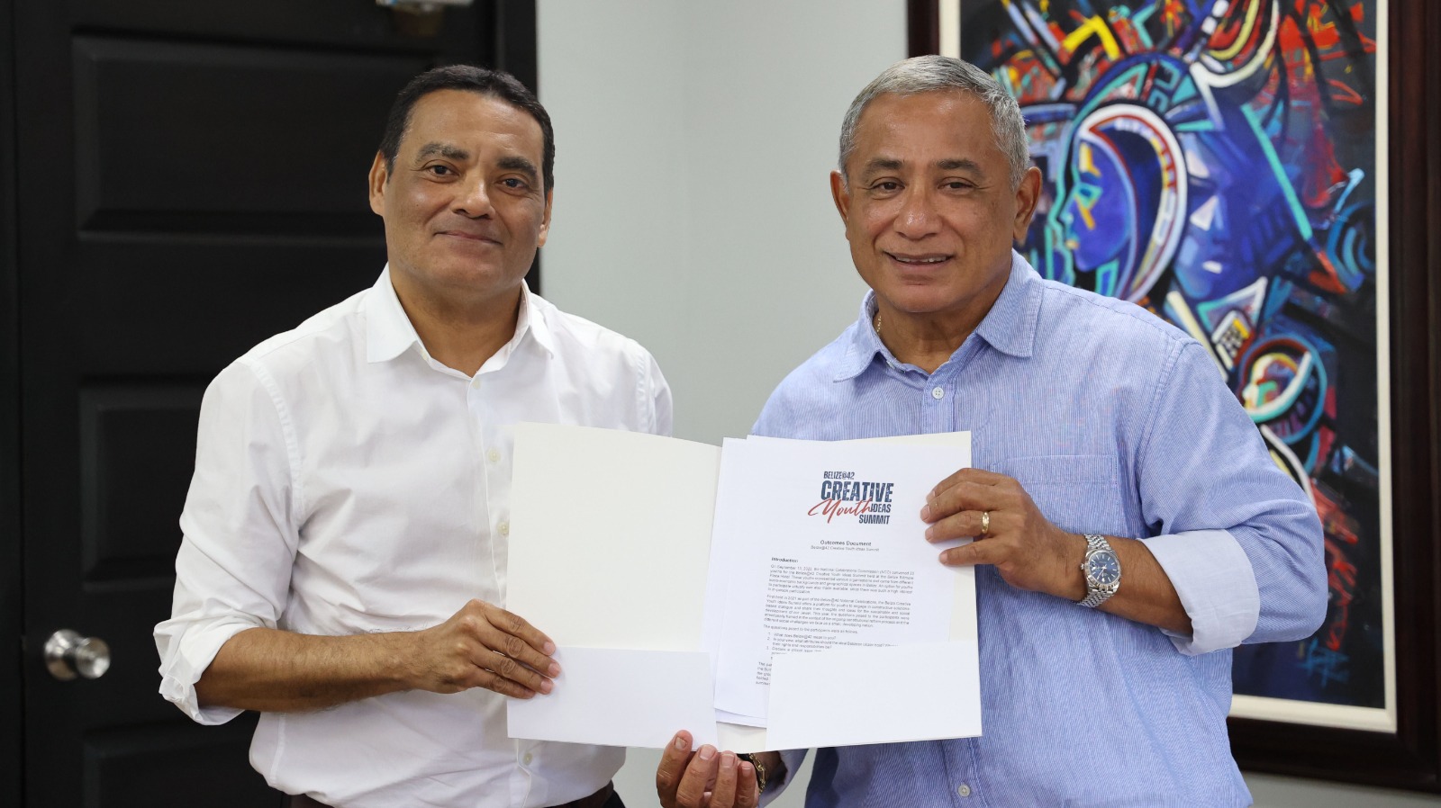 During the Cabinet Meeting on September 26, 2023, Prime Minister Hon. John Briceño was presented the Belize@42 Creative Youth Ideas Summit Outcomes Document by Hon. Francis Fonseca, Minister of Education, Culture, Science and Technology.