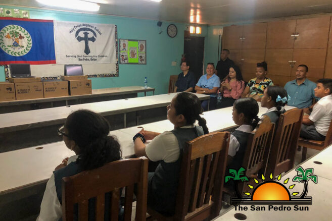 The distribution of Chromebooks continued in San Pedro. Minister Zabaneh headed to the Holy Cross Anglican School in San Mateo, where more Chromebooks were given to teachers and students. The Holy Cross Anglican School principal thanked the ministry for thinking of them and donating 22 devices. Next, they distributed another number of Chromebooks to the Seventh Day Adventist Primary School in the DFC Area.