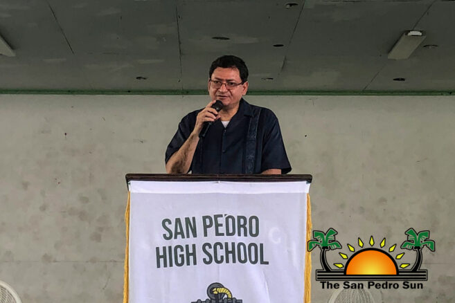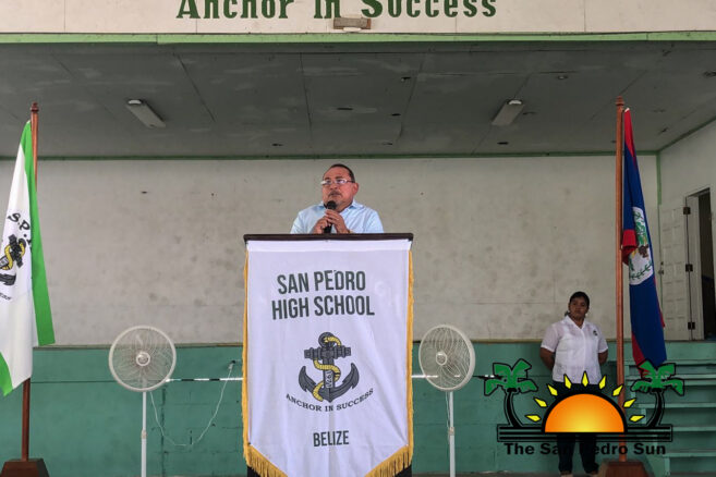 The Minister of State in the MoECST, Honourable Dr. Louis Zabaneh, made his first stop at the SPHS with his team to hand over the devices. In a special ceremony at the Angel Nuñez Auditorium, he was joined by the Area Representative for the Cayes, the Honourable Andre Perez, Deputy Mayor Marina Kay, Councillors Jose Castellano and Dianeli Aranda. The school’s principals, teachers, and student body welcomed the donation of 92 Chromebooks to those most in need of this device.