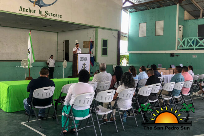 The Minister of State in the MoECST, Honourable Dr. Louis Zabaneh, made his first stop at the SPHS with his team to hand over the devices. In a special ceremony at the Angel Nuñez Auditorium, he was joined by the Area Representative for the Cayes, the Honourable Andre Perez, Deputy Mayor Marina Kay, Councillors Jose Castellano and Dianeli Aranda. The school’s principals, teachers, and student body welcomed the donation of 92 Chromebooks to those most in need of this device.