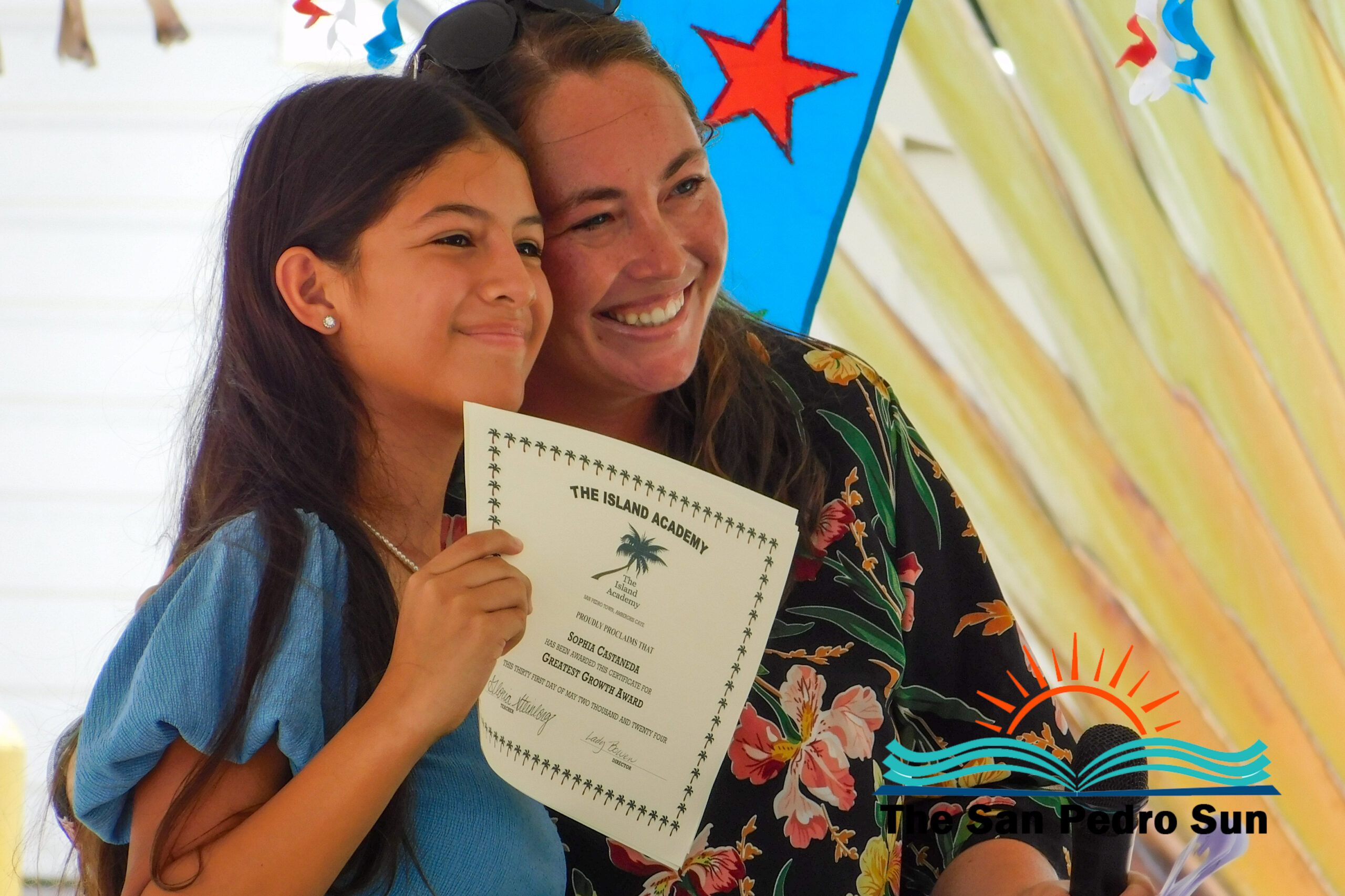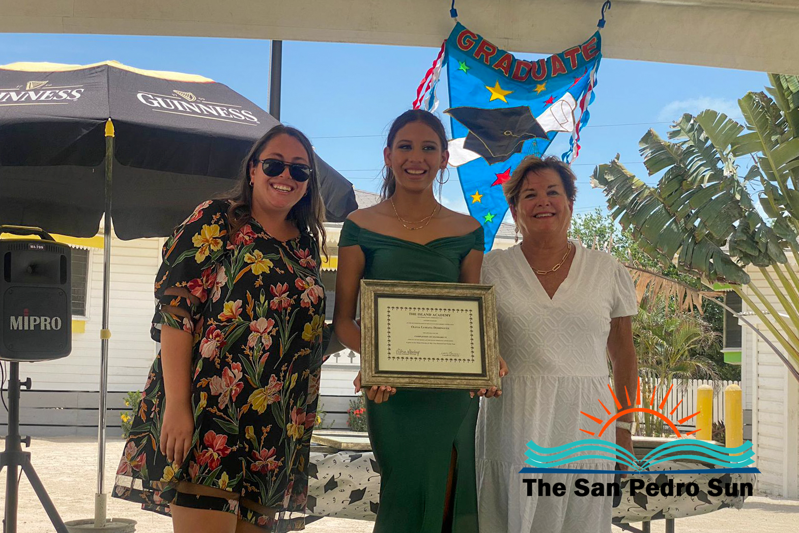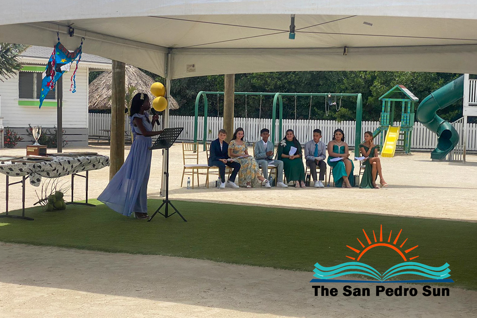 Luca Utrera, Olivia Dominguez, Daniel Estell, Ashley Cardinez, Kayjah Samuels, Hanan Harmouch, Christopher Silva, and Isabella Bowen marched to the tune of Pomp and Circumstance. The ceremony occurred at 10AM at their Mahogany Bay Village campus, south of San Pedro. The event’s program included speeches by teachers who also issued awards to outstanding students of other class levels.