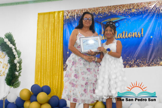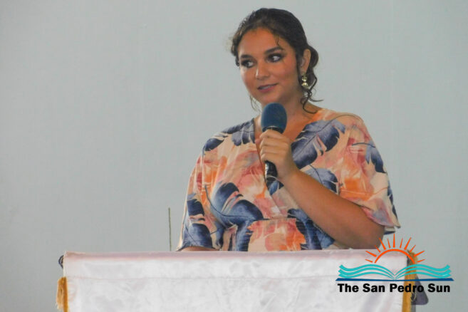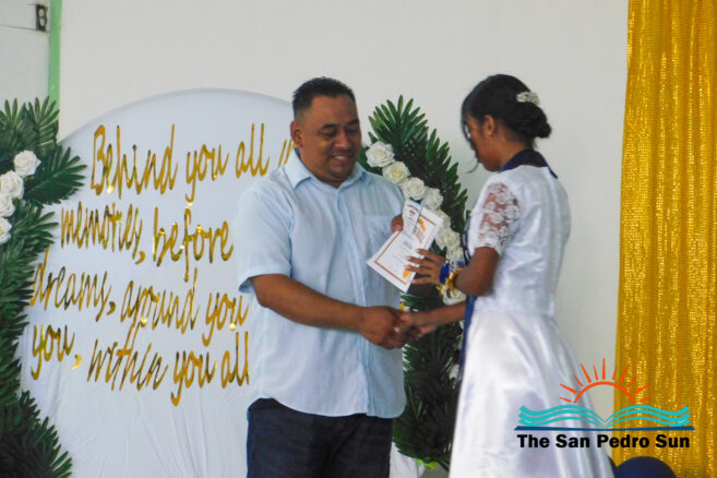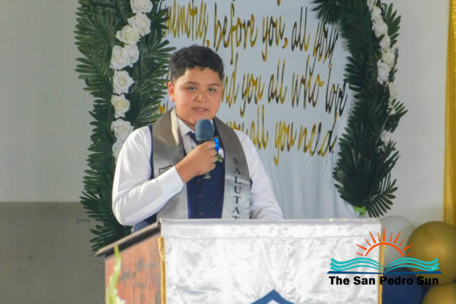 Afterward, Mistress of Ceremonies Lopez introduced the guest speaker, Carina Paz, a proud San Pedrana who is an exemplary conservation advocate. Paz congratulated the graduates for finishing their primary school studies and starting the next stage as they prepared for life. “You have before you all your dreams. The future is a blank canvas waiting for you to paint it with dreams and aspirations,” said Paz. “As you progress to high school, you may encounter many challenges, but do not be afraid; embrace each obstacle as an opportunity to become stronger.” She advised them to be resilient and consistently move forward.
