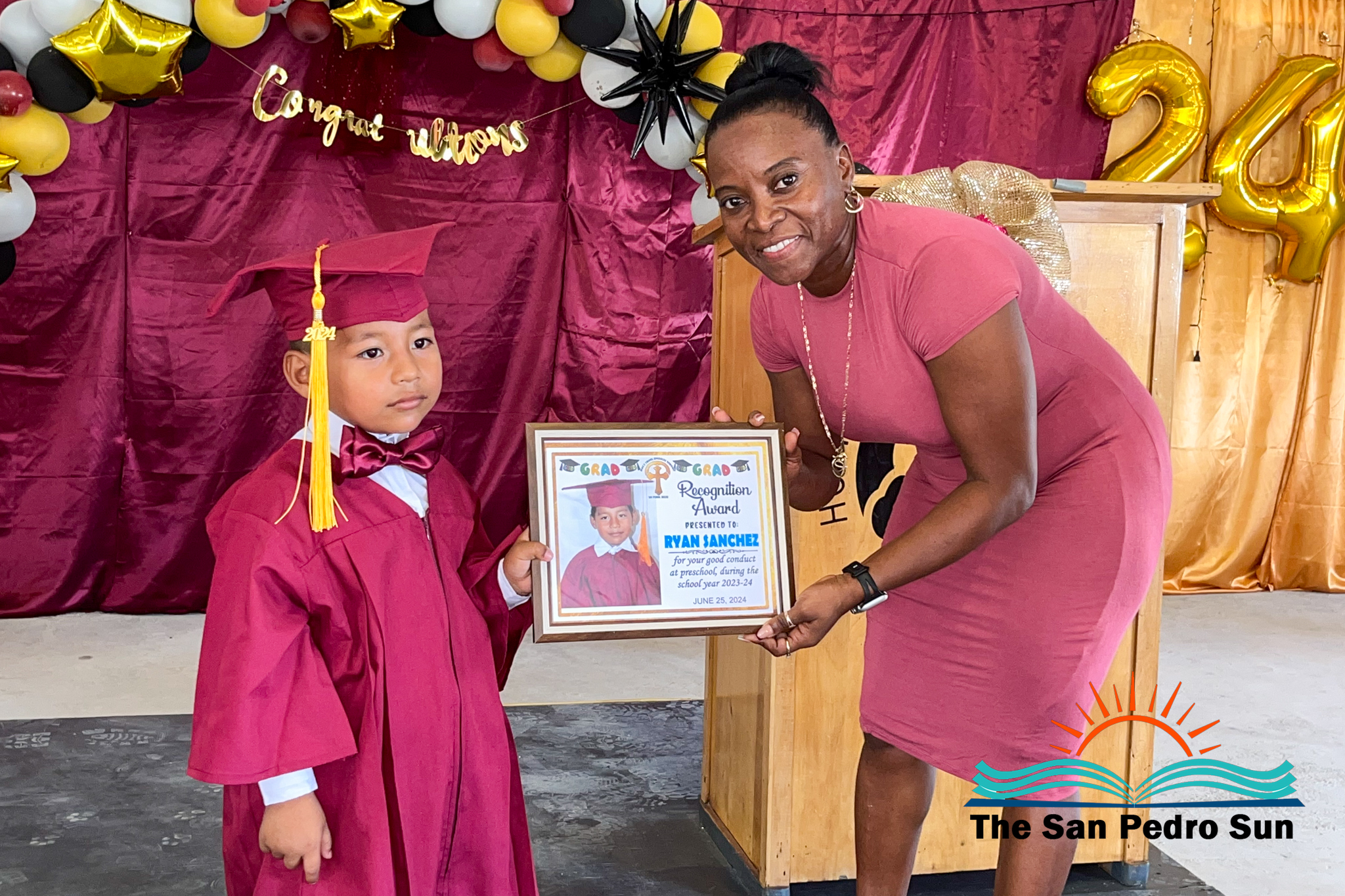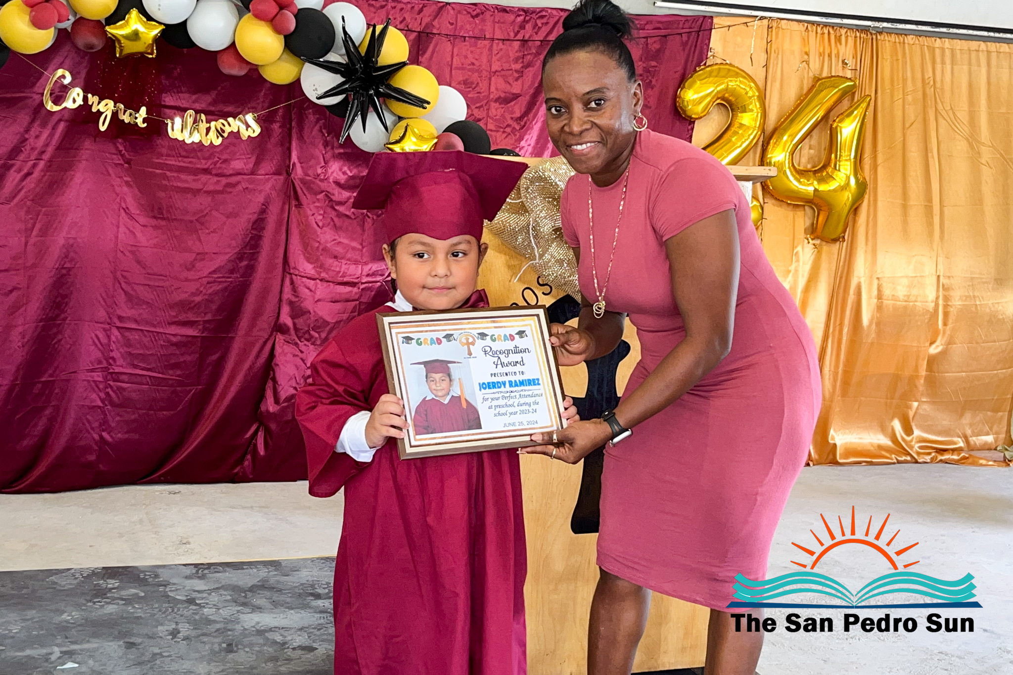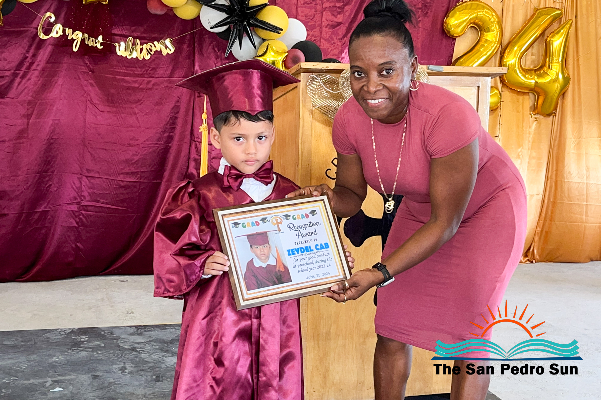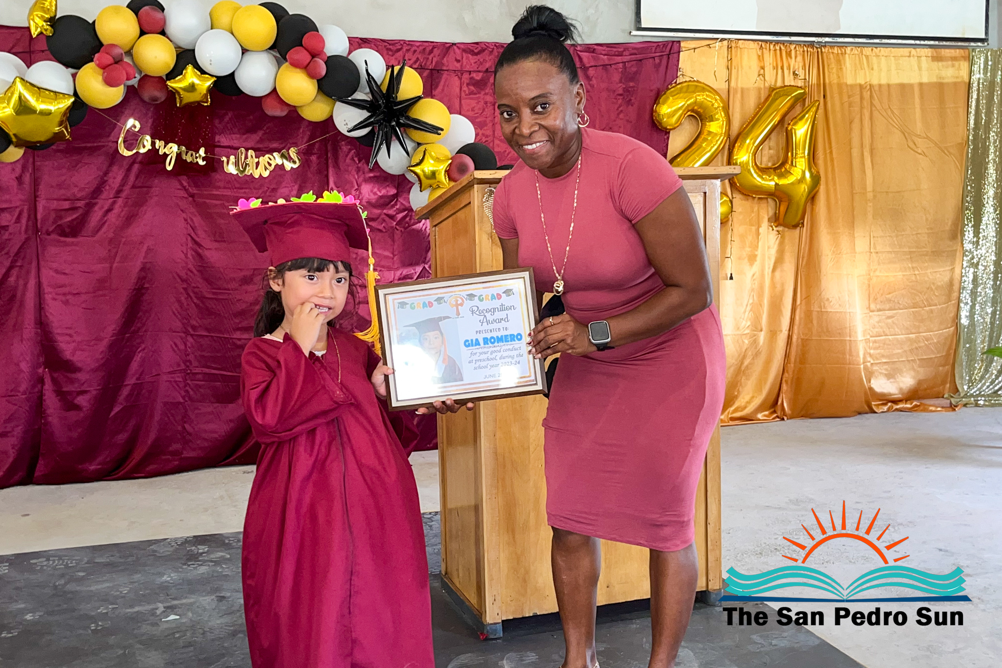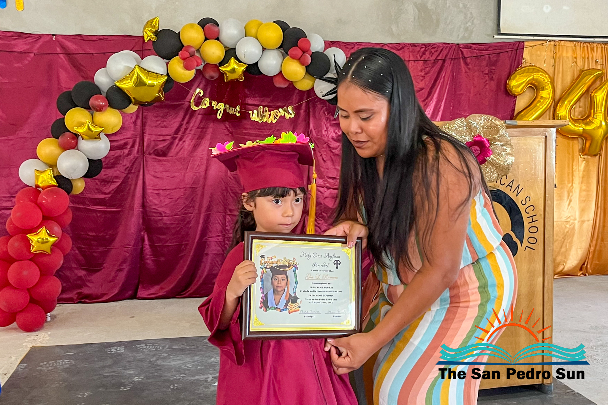 The graduation ceremony for the preschool division took place on Tuesday, June 25th, at the school campus, starting at 2PM, with Aron Thomas as the Master of Ceremonies. The ceremony began with the singing of the National Anthem and a prayer led by the graduates. Ryan Sanchez then welcomed parents, students, and teachers, expressing his honor in representing the graduating 2024 class. Councilor Marina Kay also shared words of encouragement for the kindergarten graduates. The children performed the song “We Are the World” and a poem titled “Tata Duende.” Certificates were distributed after the presentations, and the preschoolers received their diplomas. The ceremony ended with a video showcasing special moments of positive engagement by the children throughout the school year, followed by a vote of thanks by Faith Velasquez. Appreciation awards were also presented to Olivia Tasher, Viviana Paredes, Aaron Thomas, and Councilor Marina Kay. The event concluded with the infant graduates walking the aisle with their certificates to the closing song, “I am ready to go.”