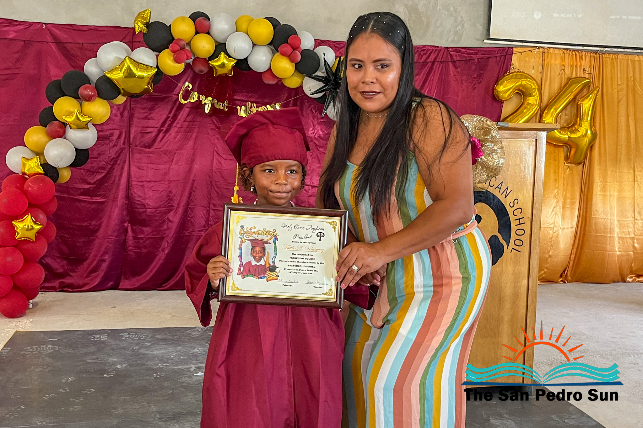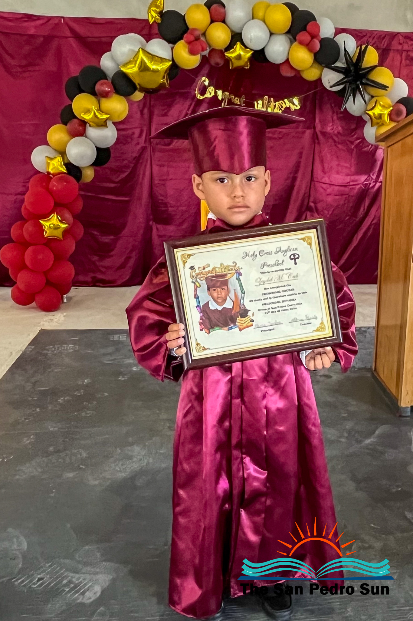 The 2024 graduating class of Holy Cross Anglican Preschoolers included Joerdy Ramirez, Xander Pascasio, Ryan Sanchez, Nathaniel Novelo, Elijah Gabourel, Zeydel Cab, John Salazar, Jeol Cowo, Gia Romero, Rosalie Chavis, Faith Velasquez, Jessa Triminius, Gisel Pacheco, Arji Leiva, and Genisis Leiva.