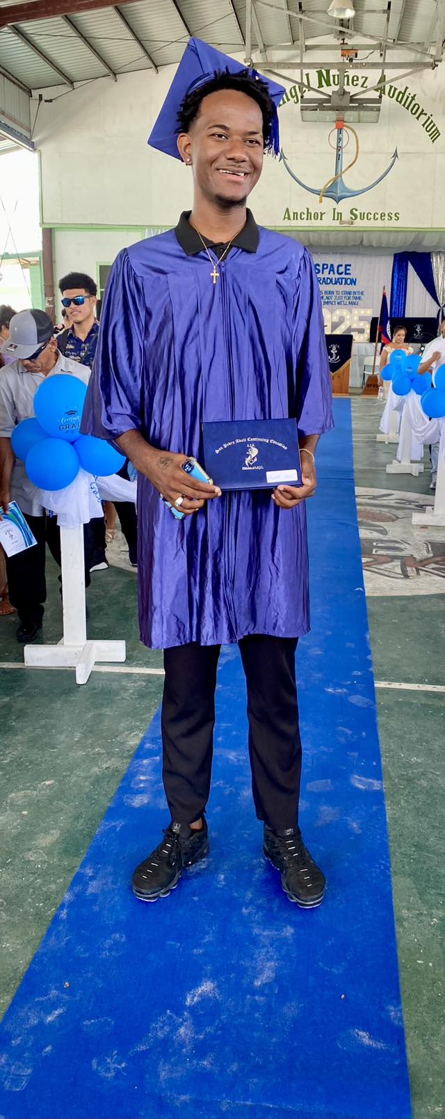 The graduation ceremony, held under the theme “Born to stand in the hall of fame, not just for fame, but for the impact we’ll make,” took place at the Angel Nuñez Auditorium. Teacher Pedro Garcia presided over the event, which began with the graduates marching to the tune of Pomp and Circumstance. After singing the Belize National Anthem, graduate Deborah Cuellar delivered a heartfelt invocation.