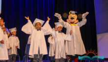 The morning ceremony concluded with the children dancing to the song Dynamite, during which Mickey and Minnie Mouse made a special appearance. The graduates then marched out with their diplomas.