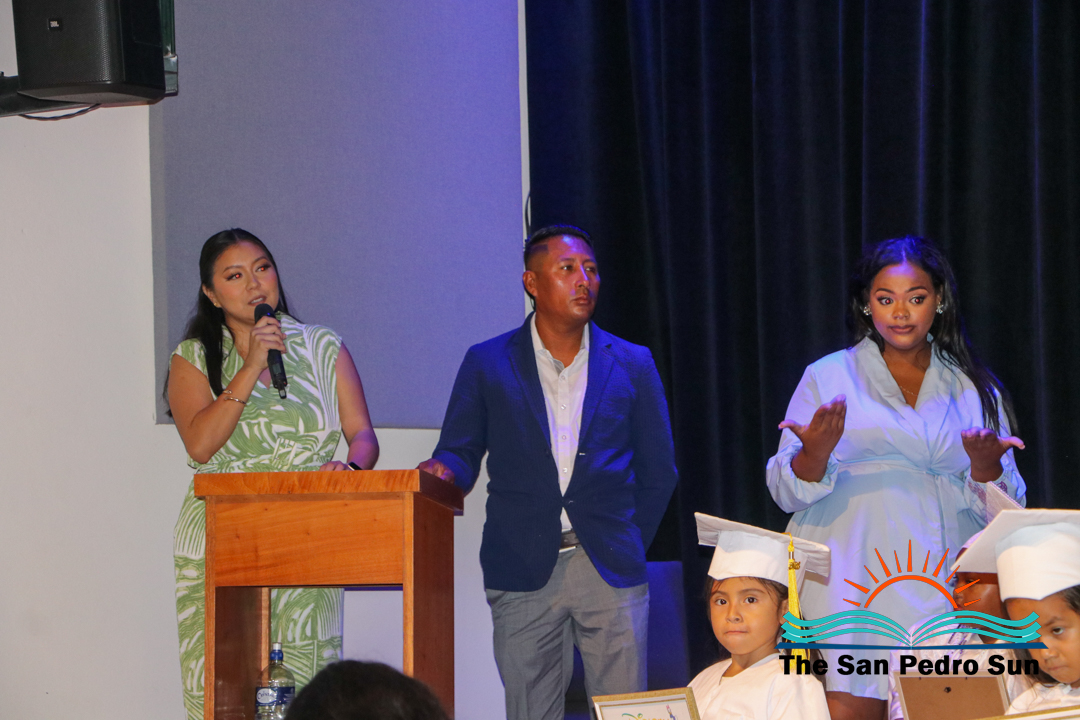 The morning ceremony began at 10AM, where the Master of Ceremonies welcomed everyone. The procession of the graduates was followed by the playing of the National Anthem and the San Pedro Preschool song, led by the young graduates. The welcome address was delivered by four of the little graduates: Ivanna Hernandez, Kaima Tescum, Alyssa Carillo, and Chelsea Castro. This was followed by the poem Here I Go, recited by Kendall Thomas, Anthony Henkis, Uriel Perez, Kaima Tescum, and Chelsea Castro.