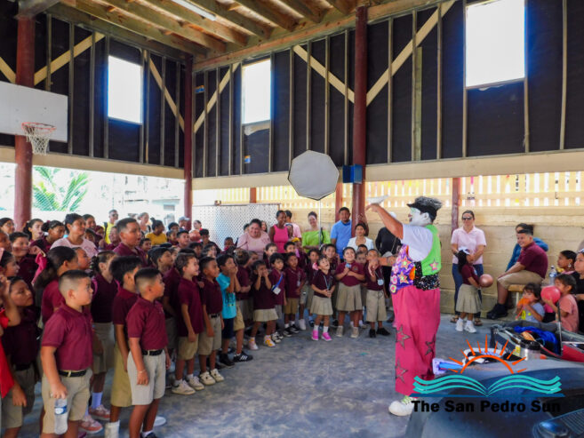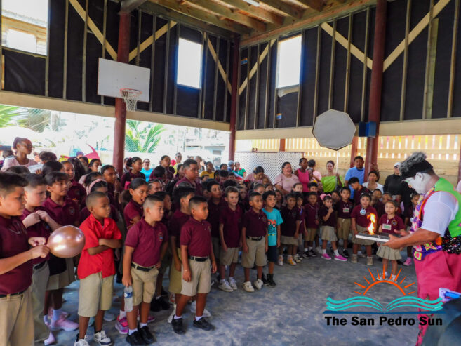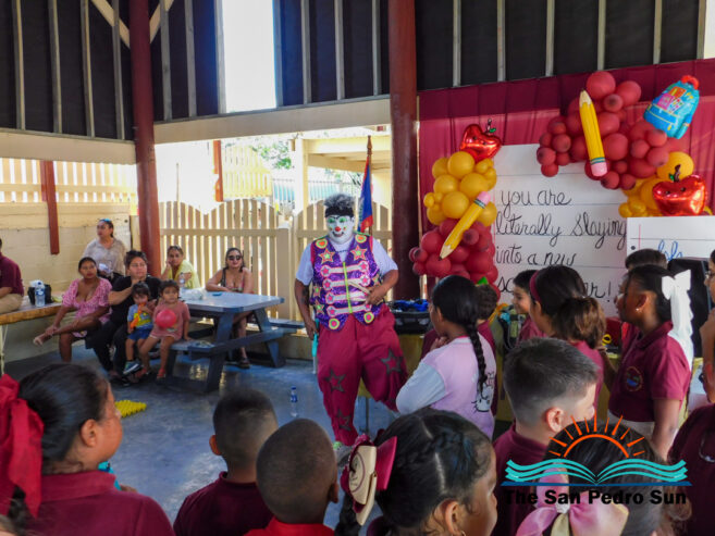 A highlight of the day was a presentation by Ozzy the Clown from Belize City, who delighted the crowd with his humor, energy, and magic tricks. Students eagerly joined the interactive show, which brought plenty of laughter and excitement.