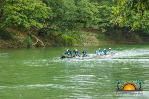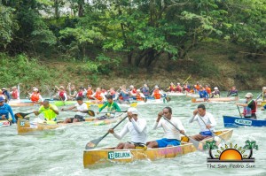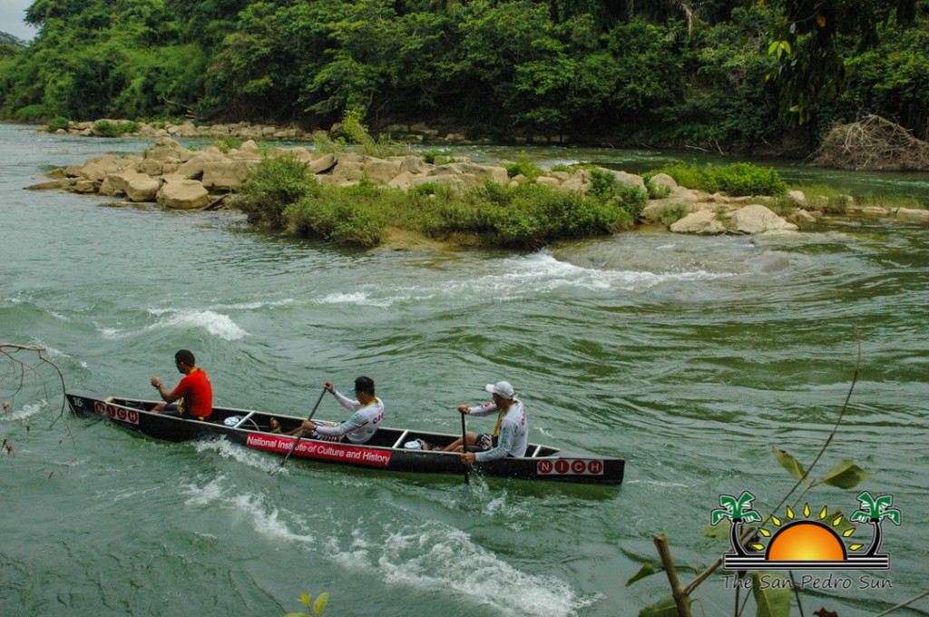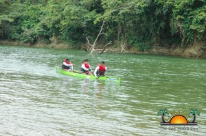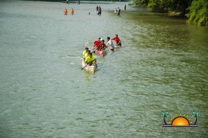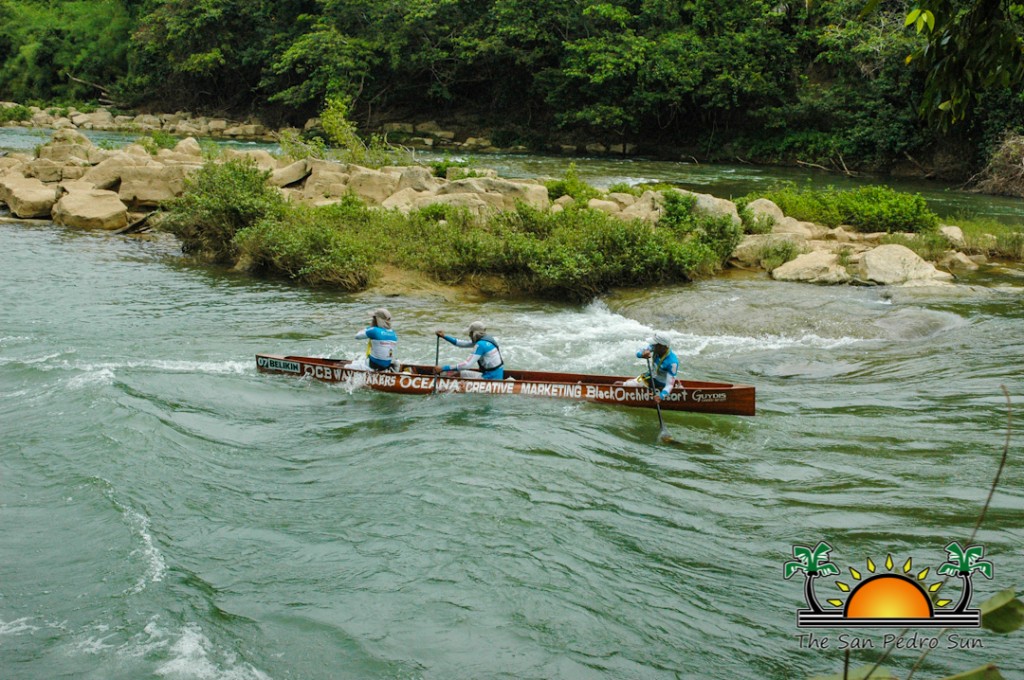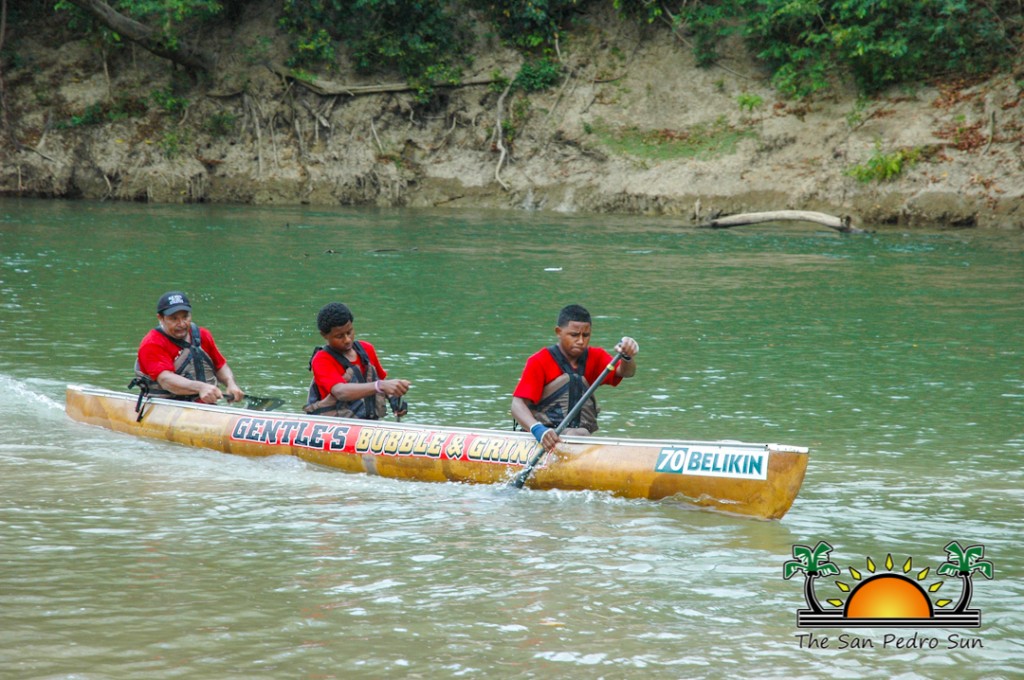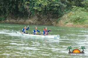 The first leg of the race took the paddlers 46 miles down the Mopan River then into the Belize River ending at Banana Bank. The Cobb’s Arm team picked up six of the seven station prizes on the first leg of the race. Those station prizes were nabbed at Branch Mouth, Banking Pot Ferry, Iguana Creek Bridge, Dream Valley Resort, Young Bank Ferry and at Guanacaste Park. Despite winning those prizes, Cobb’s Arm finished in second place at Banana Bank clocking at 4:48:20, only four seconds behind the National Institute for Culture and History (NICH) team who clocked in at 40:48:16. The NICH team was represented by Efrain Cruz, Felix Cruz and Alexander Cruz. Finishing third in the first day was OCB Wavemakers, comprising of Chris Guydis, Jerry Rhaburn and Wilberto Daniels and sponsored by Oceana in Belize, Creative Marketing and Black Orchid Resort.