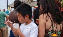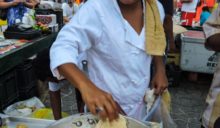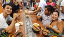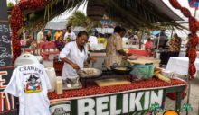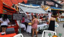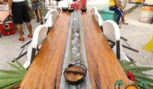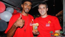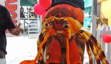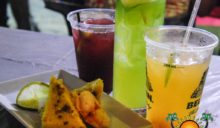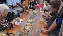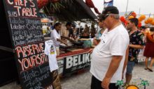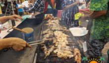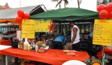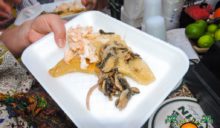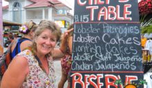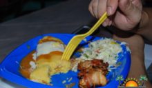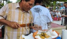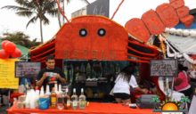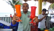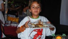 At the end of the judging, there were some awards to hand out. Taking third place in the drinks category was Di Vu’s Orange Crush, while second place went to Caliente’s fun Strawberry Lobster Margarita. First place went to Estel’s sangria, which one judge declared to be the best he’d tasted in Belize! (High honors indeed.) Best booth went to Estel’s Dine by the Sea. Their booth was super adorable: a giant red lobster whose eyes glowed when the sun went down! In the food category, Casa Picasso’s Lobster Cornbread pudding took third place, while second place went to Di Vu. Claiming the grand prize this year was Elvi’s Kitchen’s delicious Tamalitos de Chaya.