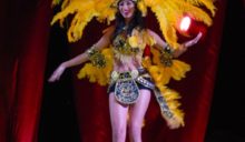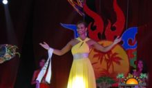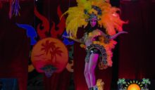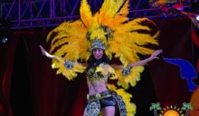 Opening the stage was the lively performance by San Pedro AIDS Commission Carnival Comparsa Group with their popular “Rompe La Piñata” dance sequence. They were followed by Belize’s Soca Queen, the ever-energetic Ernestine Carballo, who was joined by members of the Belize National Dance Company. After properly warming up the stage, the entertainers made way for the eight contestants as they proudly displayed their elaborate and colorful cultural costumes. Feathers, beading, crystals, colors and history were modeled beautifully, a piece of each country depicted with honor and grace.Costa Maya Pageant Performances-11