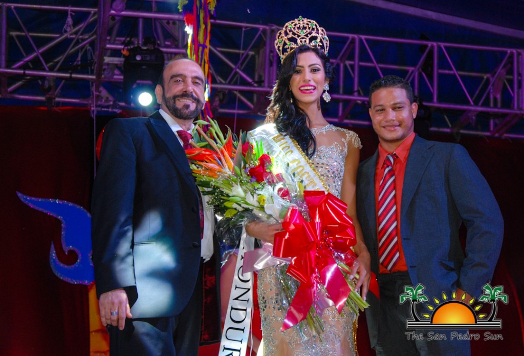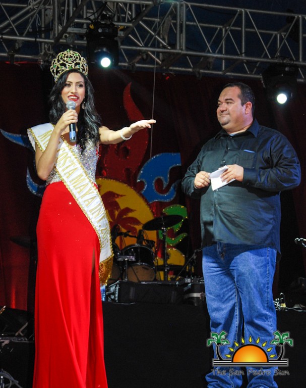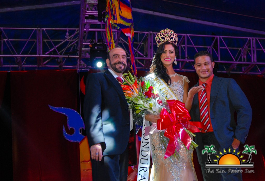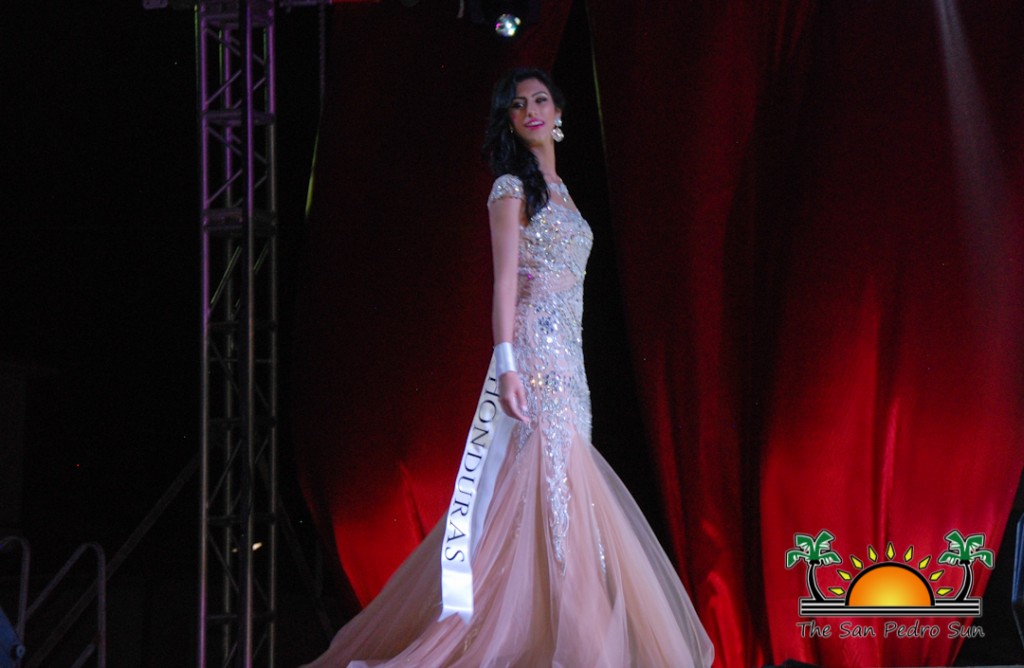 Masters of Ceremonies Eiden Salazar Jr. and Karen Jordan quipped with the crowd for a few moments before the beauties graced the stage in their stunning evening gowns. Beauty and elegance radiated from each of the ladies as they sashayed across the stage. In a twist to the standard set-up, each contestant stood on-stage after modeling her gown, ready to face the most difficult of the night’s tasks: Question and Answer segment. Judging the eight beauties were Gricel Graniel, Idolly Saldivar, Manuel Ancona, Tanya Giacoman Ayala, and Diane Tabony.Honduras Reina de la Costa Maya Gabriela Vanessa Salazar Valle-10