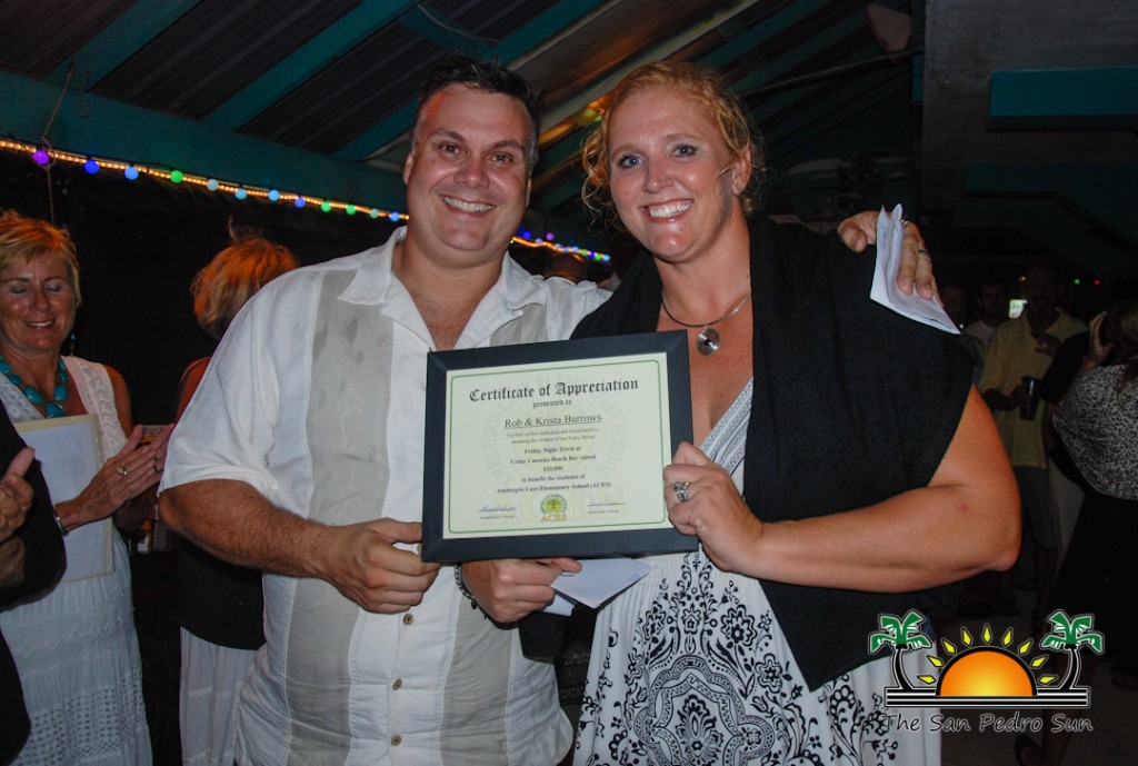 Before the live auction could take place, the owners of Crazy Canucks Beach Bar, Krista and Rob Burrows were presented with a certificate of appreciation for their support of ACES. In the past two years, the Burrows have managed to raise $20,000 for the school. Rob then led the very entertaining live auction, managing to convince guests to bid on several items up for grabs. Despite a downpour of rain, guests stayed under the shelter of the covered restaurant, bidding higher and higher for paintings, fishing trips, excursions and more. ACES certainly benefitted from this wonderful evening of generosity and good spirits. They thank their staff for the tremendous job they have been doing throughout the years. ACES also thanks Estel’s Dine by the Sea for hosting the event and for providing unwavering support to the children of ACES, San Pedro. To all those who bought tickets, attended and have donated, THANK YOU.