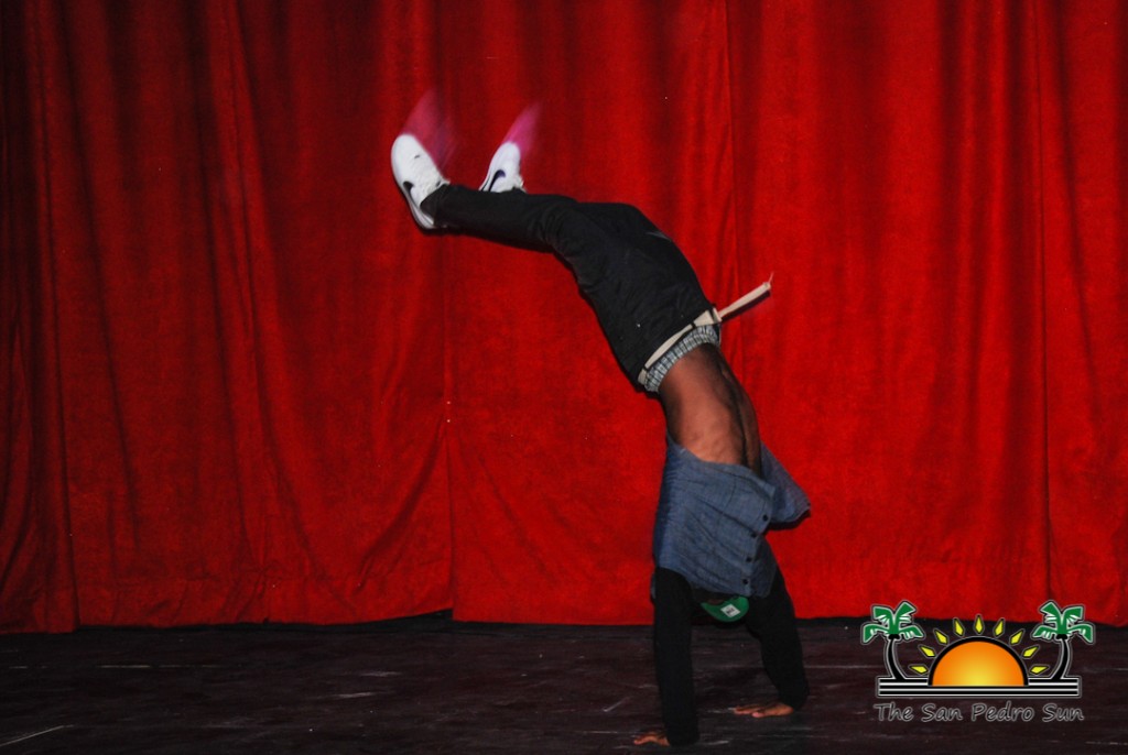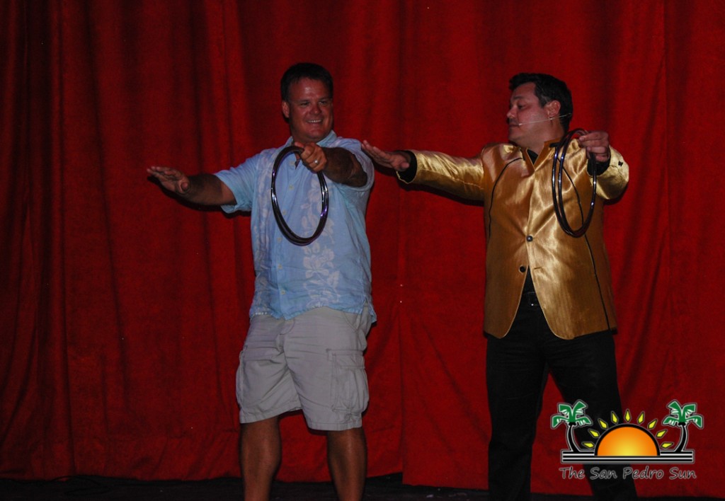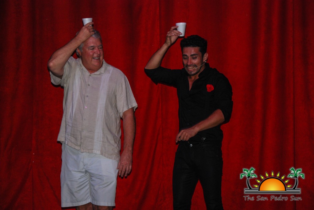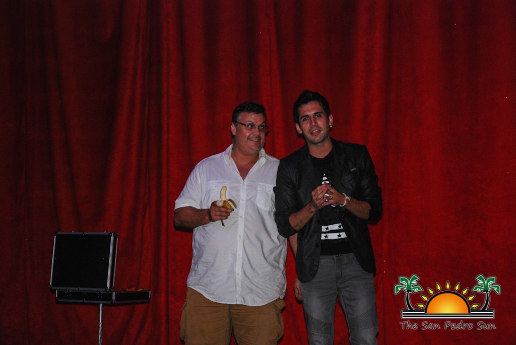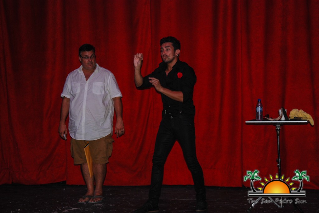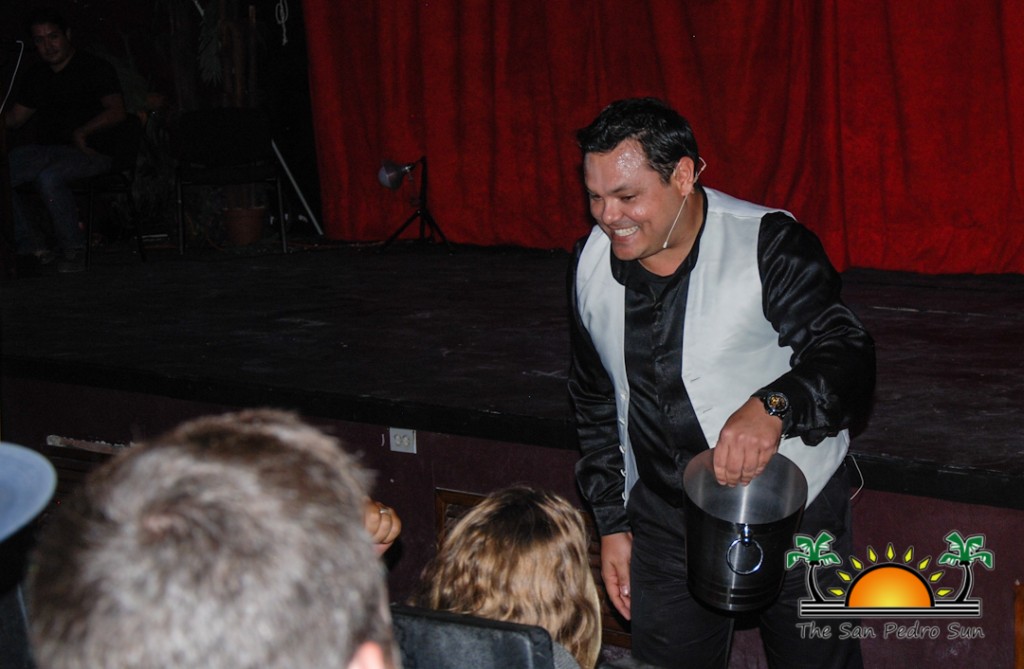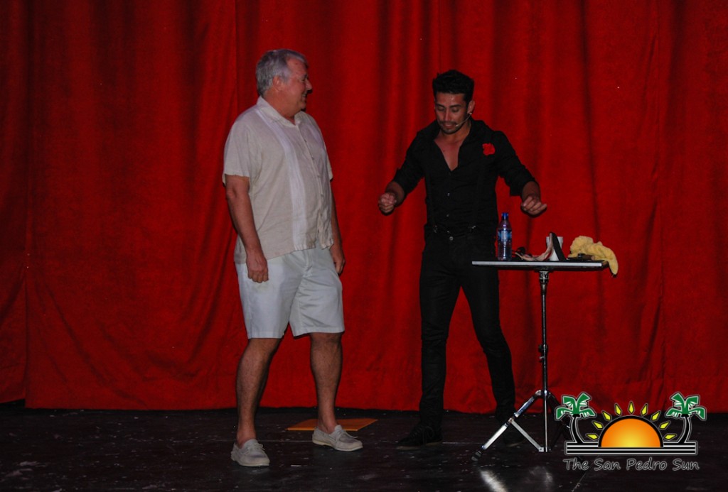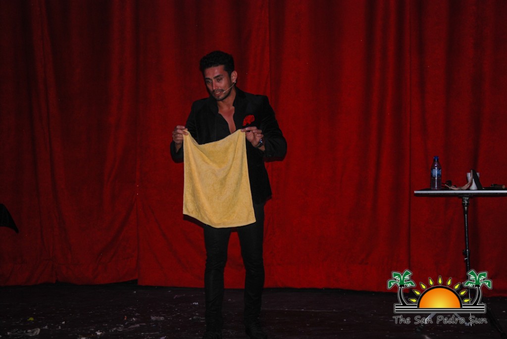 The adult show kicked off with a tumbling act from San Pedro’s very own, The Saints. From breakdancing, to backflips, these performers lured in the audience. With a brief introduction from Rotary Club of Ambergris Caye member Robert Burrows, the magical and comical entertainment began with the following line-up; Emir and Spider from Mexico; Luis Karias, Jean Cairoli, Hellen and Alexander Goz from Guatemala; Adrian Vega from Spain; Rodrigo Tolzen from Chile; and Tony Guerrero from Costa Rica.