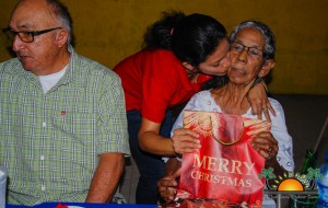 Members of the San Pedro Lions Club along with the Leos warmly welcomed the guests, who started arriving at 6PM. Once they were seated they were served an appetizer, followed by the main course and then a sweet dessert. Each one of the senior guests were provided with tickets, some were for the presentation of gifts later in the evening, while the others were to obtain free drinks.