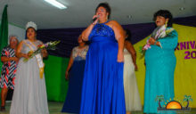 The next segment was beachwear. Each participant paced the stage in their bathing suits, some posed with their umbrellas or sundresses determined to capture the judge’s attention. The crowd cheered loudly as each contestant posed, walked and even showed off some dancing moves. Following this segment, Glenda Thompson serenaded the audience with her melodious voice.
