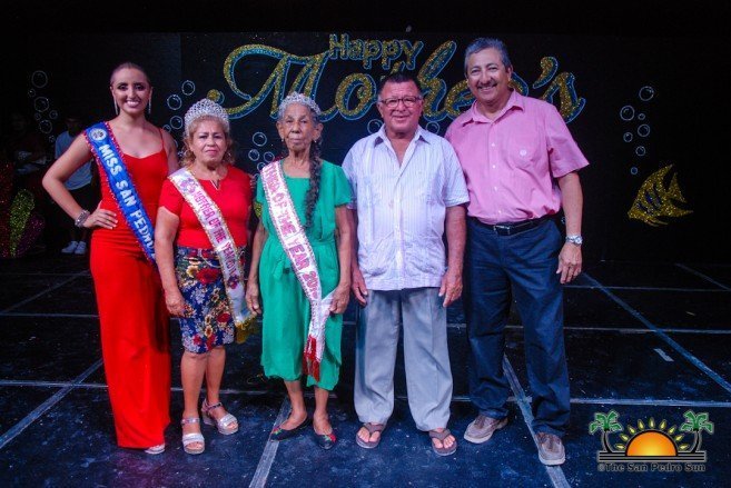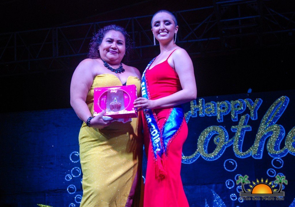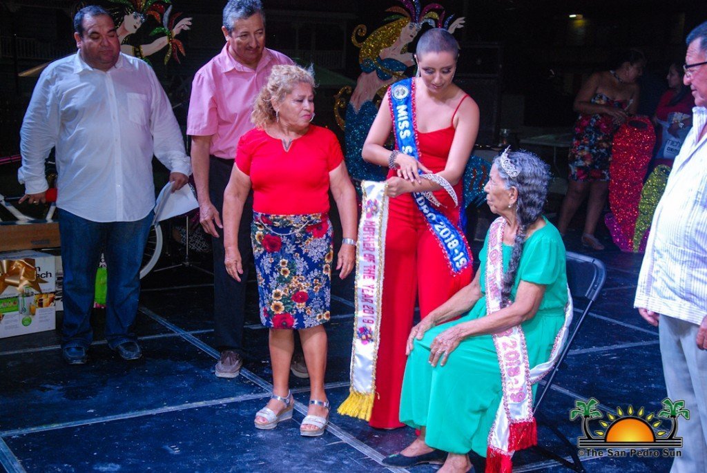 Volunteers had gathered the names of all the present mothers aged 60 and over, placing their names in a box and shuffling properly. One name was drawn and taking the title of Mother of the Year was Eli Ochaeta. 2018’s Mother of the Year Martha Badillo, congratulated her, while Miss San Pedro Chelsea Muñoz placed a sash and tiara on her, making her title official.