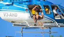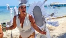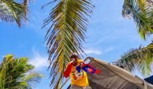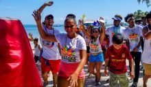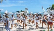 DJ Debbie and DJ Odyssey provided the musical entertainment while the flying piñata showered candies to the crowd on the beach.