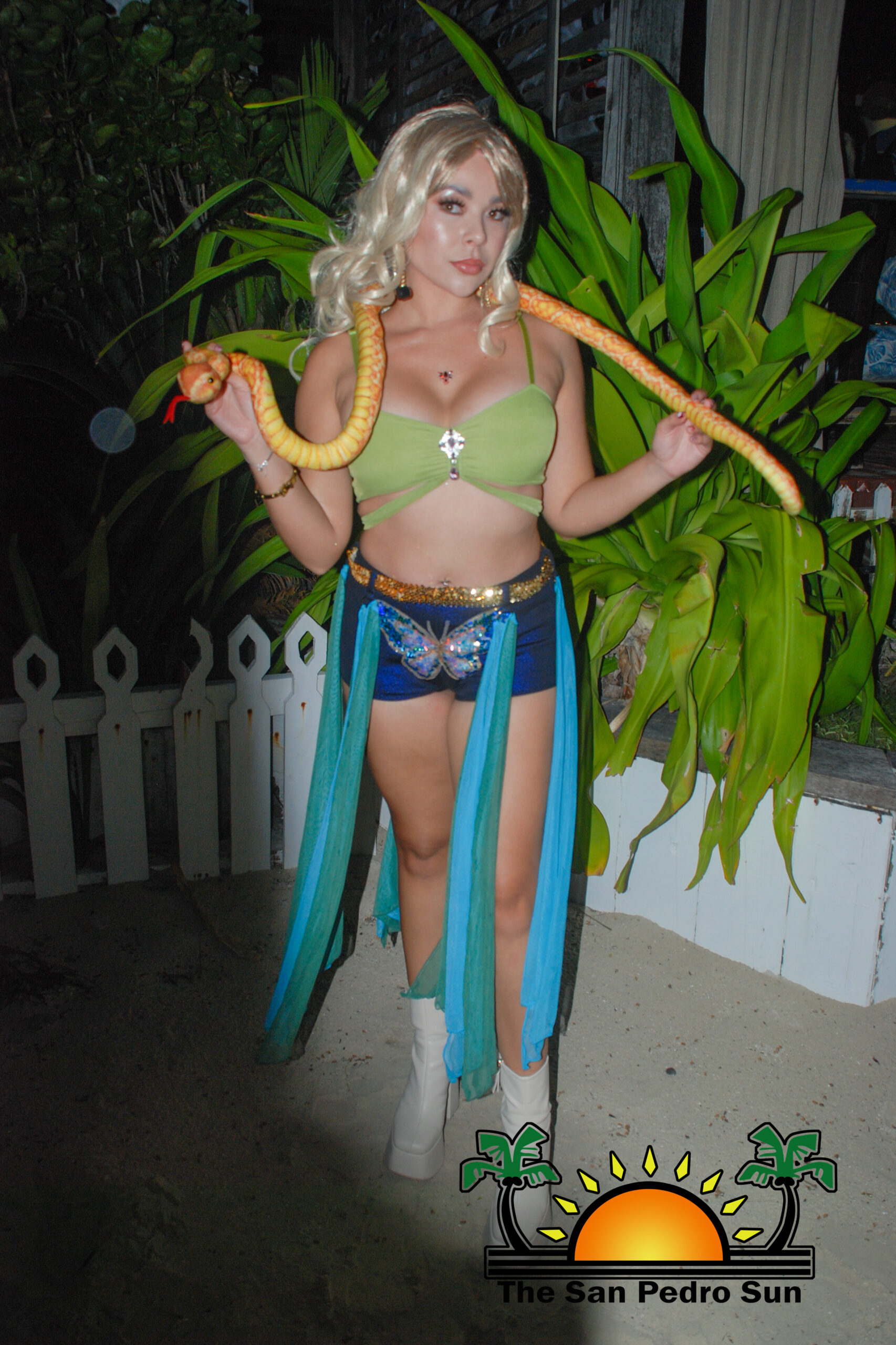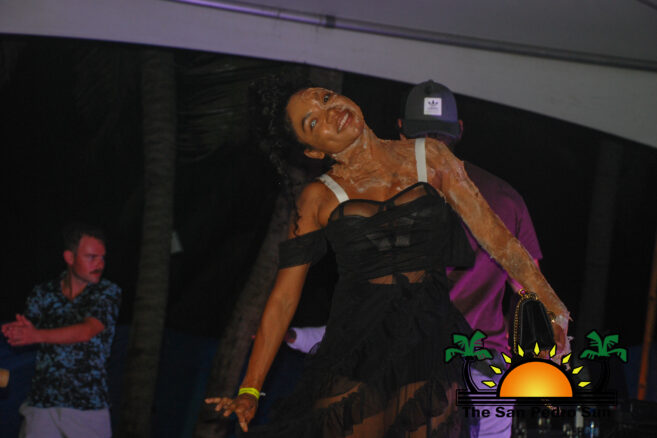 Deejay Debbie kept the party alive with popular tracks while a group of judges scrutinized each costume. After some time, the scores were tallied, and the grand winner of the 2023 Halloween Party was announced. Taking home the grand prize for the Most Creative was the Egyptian gods, Anubis and Horus. The winners took home a prize consisting of a night’s stay for two persons at a river view treehouse and one signature tour courtesy of Caves Branch Jungle Lodge on the mainland. The big win includes roundtrip plane tickets from San Pedro Town to Belize City via Tropic Air and a $100 cash prize.